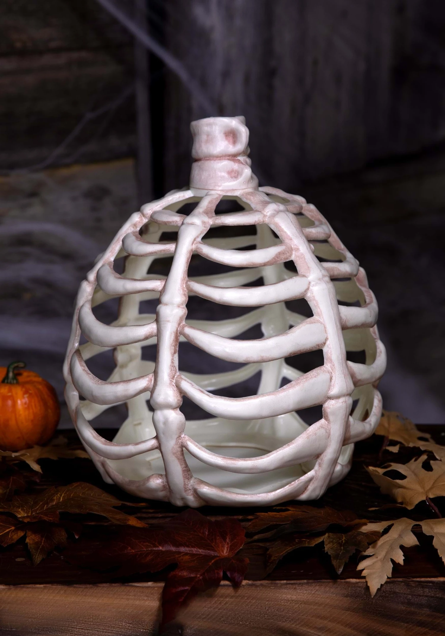 Imagine attending a monster bash and seeing the remains of their last meal turned into a decorative masterpiece. This year, you can borrow a bit of that monstrous flair with our 11-Inch Bone Pumpkin Halloween Decoration, blending the spooky of Halloween pumpkins with a macabre twist of bones.