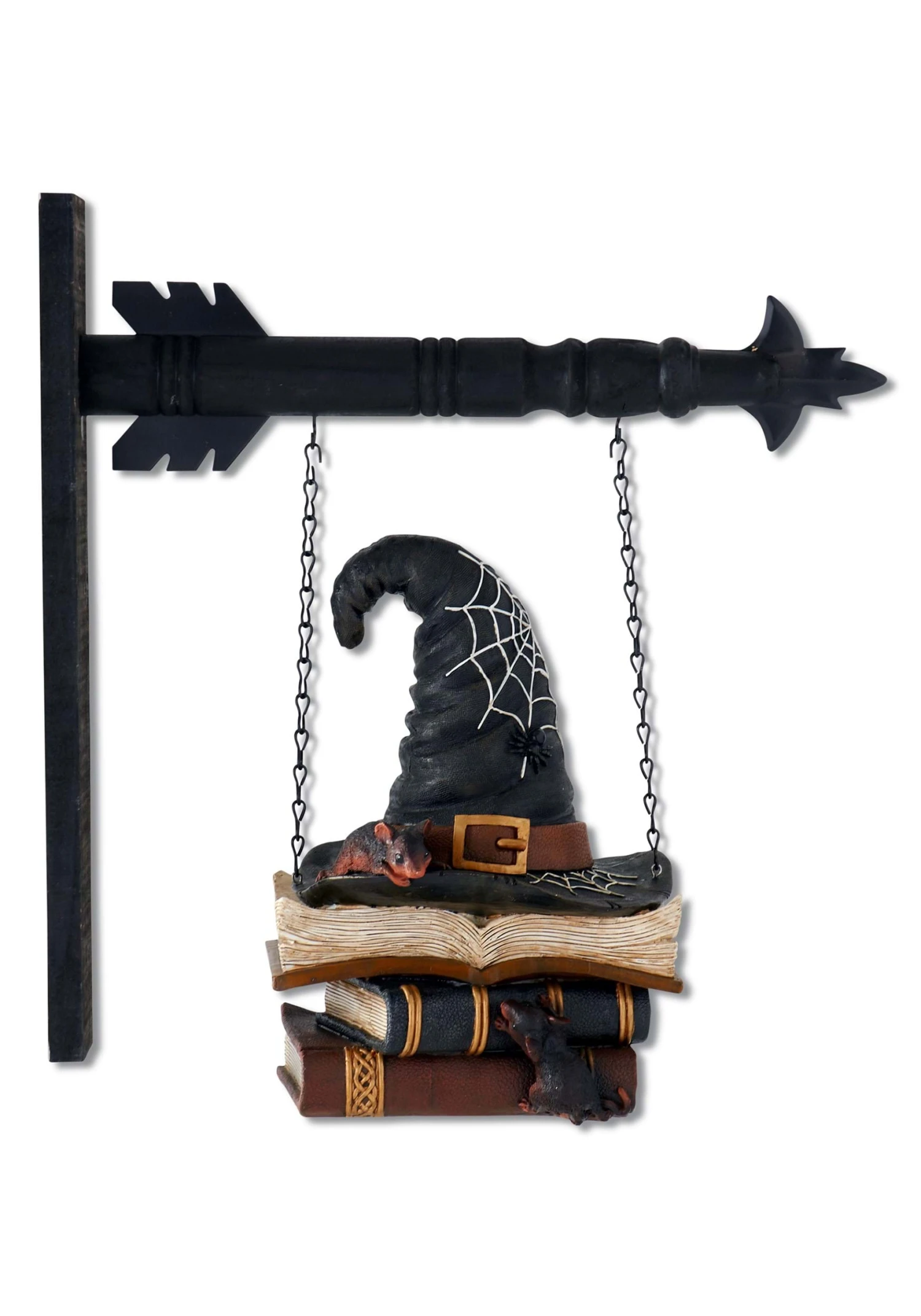 You can dream of setting up shop after you hang this 12-inch sign. Cast from resin, it features a pile of books with adorable mice nibbling at the pages. A witch hat sits on top, draped with a spider web. Because, as everyone knows, the best book stores have plenty of dusty old corners!Â
