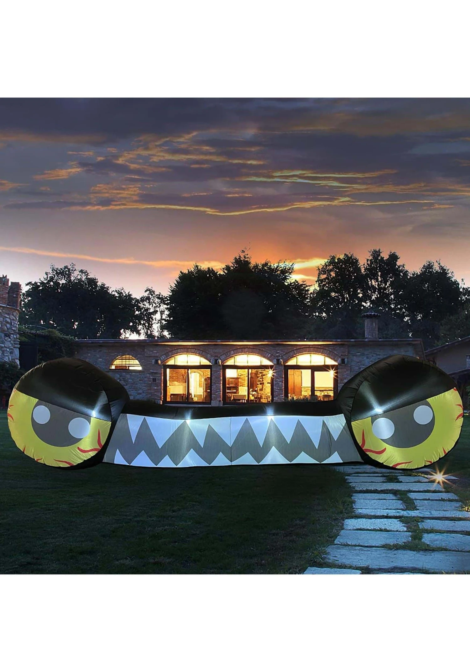 Give your house the perfect Halloween treatment with this 14′ House Monster Inflatable Decor! The piece is shaped like a pair of bloodshot eyes on either side of a wide row of teeth. Put it anywhere that will make your house look like it’s hungry for some humans!Â