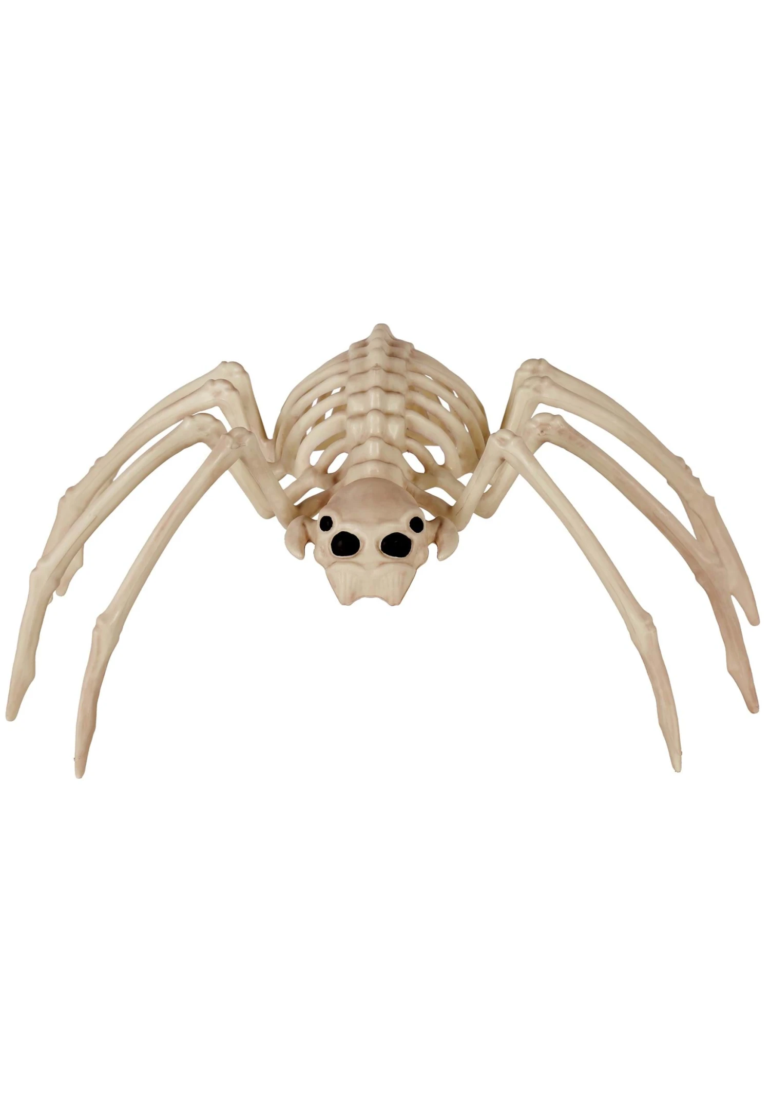 Serve up a bone-chilling fright when you display this 20″ Spider Skeleton Halloween Decoration! The cleverly-designed prop is molded to resemble a bony spider. It has a skull with multiple eye sockets and large front fangs, a curved skeletal abdomen, and four bent legs attached to each side of its body that support it in a standing position.Â