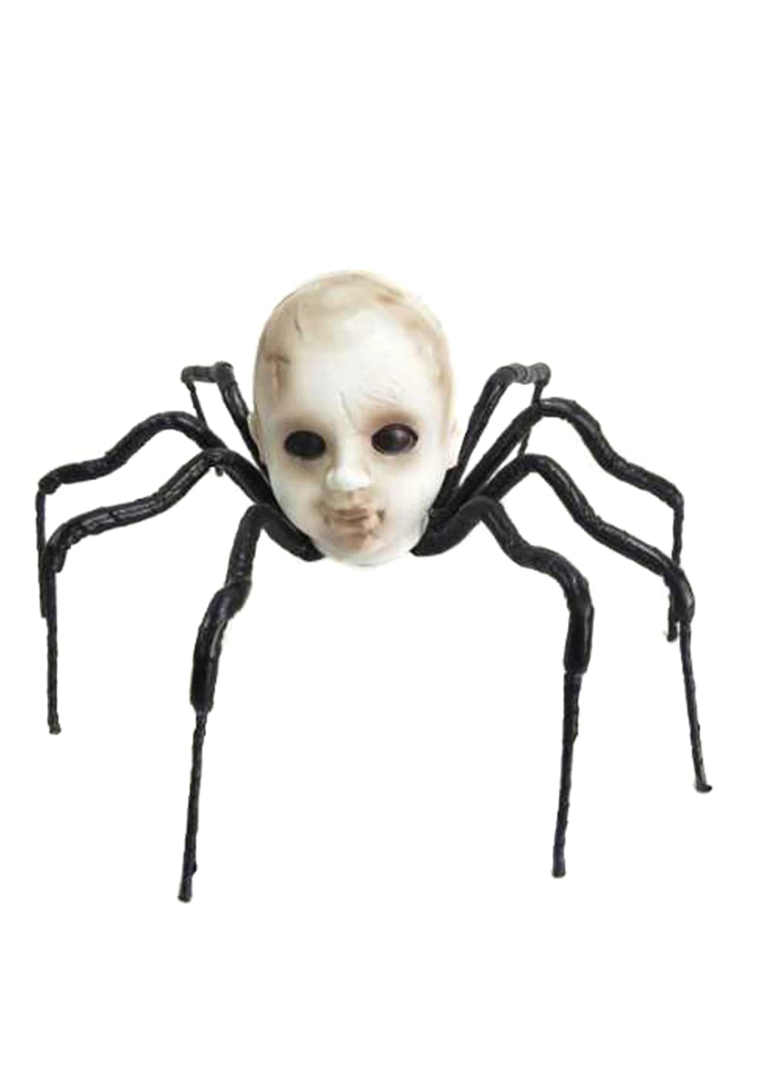 This eerie spider spans out at two feet. The spider’s head looks like it was taken out of a haunted house with a faded baby doll head with blacked-out eyes. If you’re looking for a way to really make your Halloween spider web shine, this baby spider is sure to shock visitors and trick-or-treaters. Place in your indoor or outdoor display. Purchasing this spider is sure to outshine all of the childhood monsters that you used to dream up. Take that, mummy hand! This baby head spider is now taking center stage in all of our nightmares!