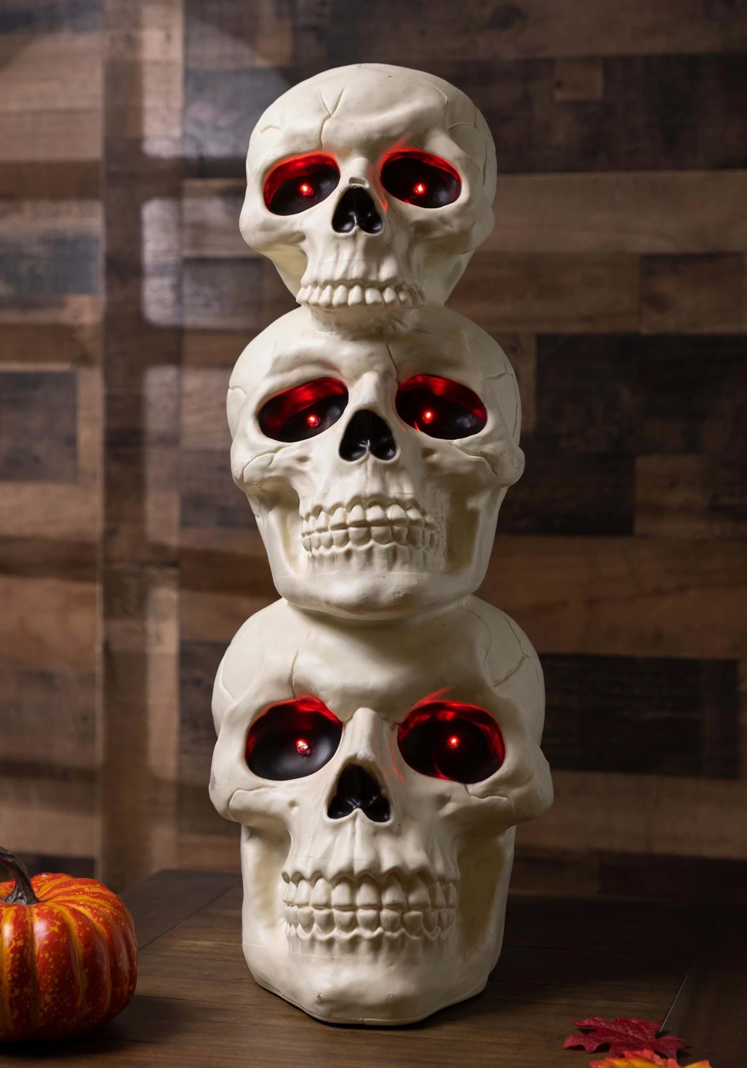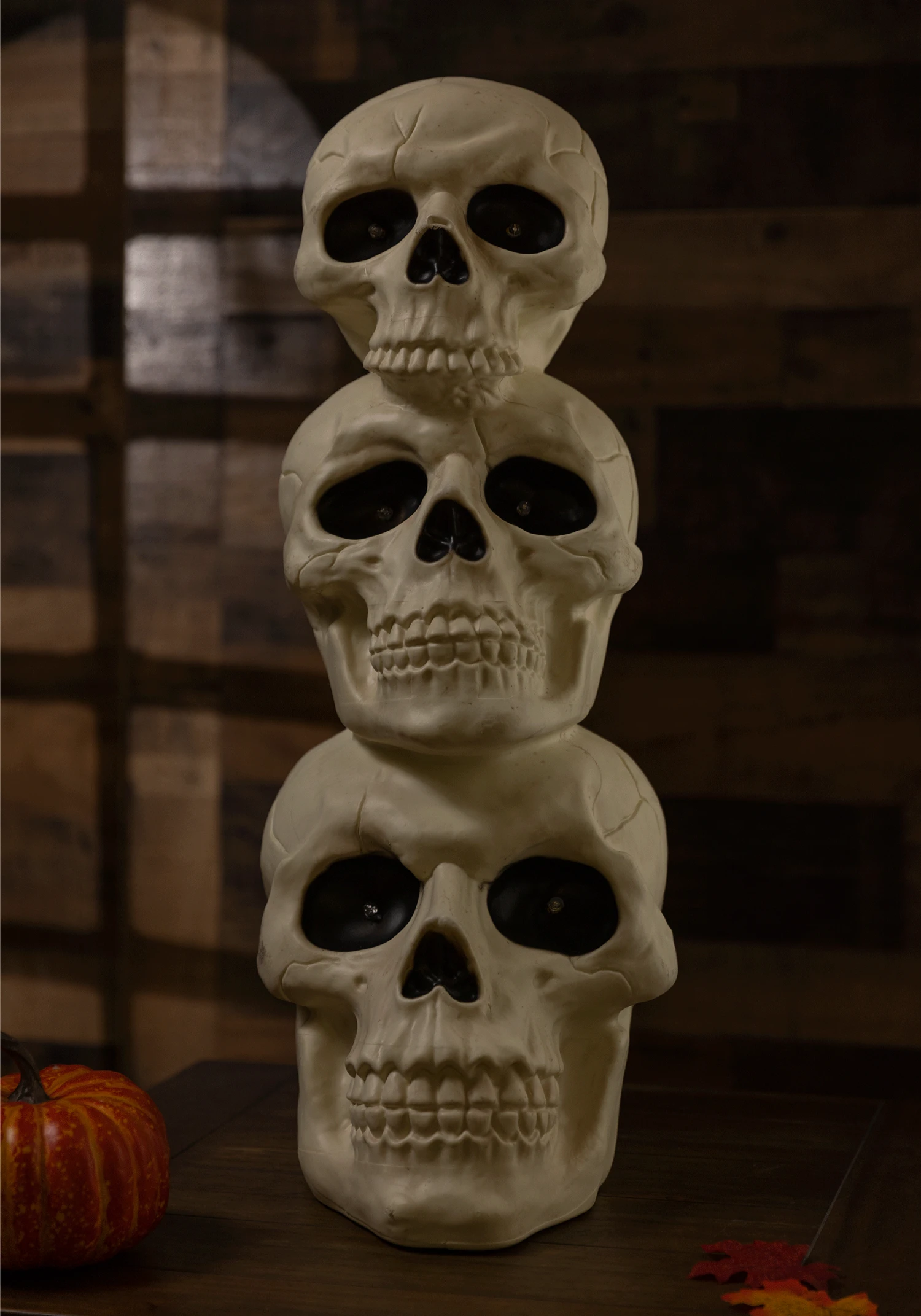 We haven’t been able to get this trio of skulls to tell the rest of the tale. But, perhaps, when you bring home this Skull Totem Halloween decoration, you’ll pry it out of their tight-lips. (Well, figuratively.) The molded decoration stands just over two feet tall and features a large, small, and middle-sized skull whose eyes will gleam red with the fury of their souls. (Or at least with the electric current running through the prop.) Discover the truth of what happens when a Gnome, Human, and a Gigant walk into a bar… or just have a great talking piece amidst the rest of your spooky decor!