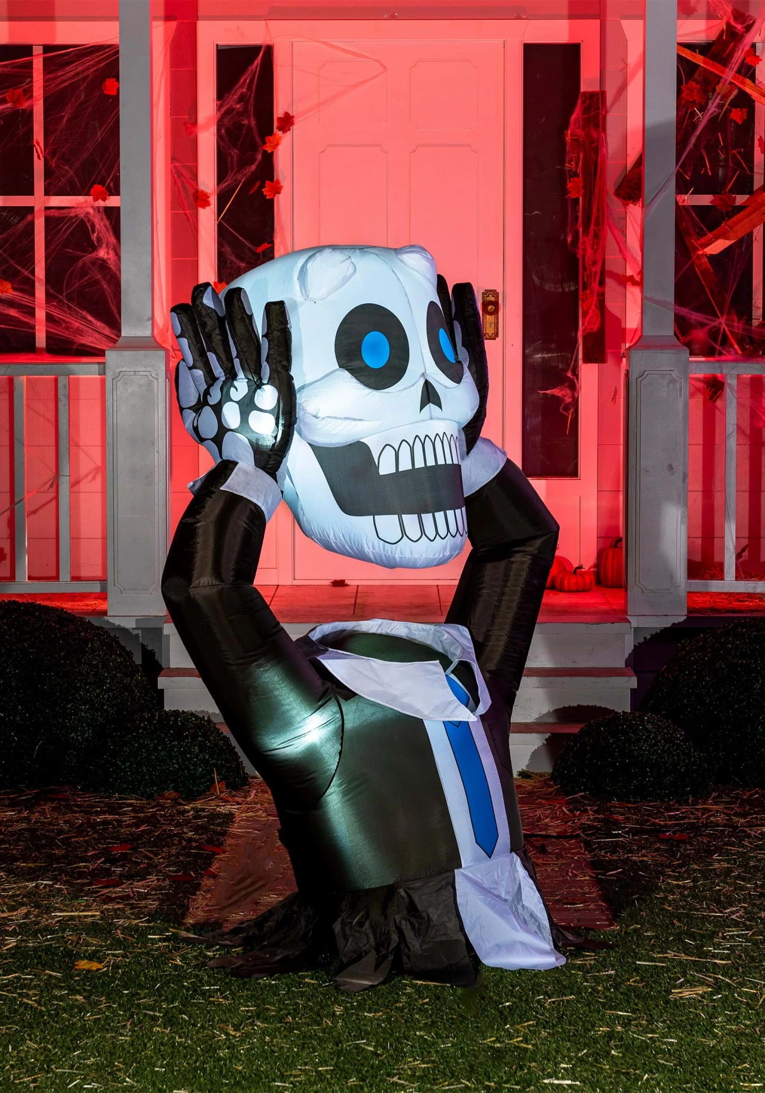 We’ll see your headless horseman and raise you this 4ft Tall Headless Skeleton Inflatable Decoration! When fully inflated, the decoration is shaped like a torso with raised arms holding an oversized skull in the air above its neck.