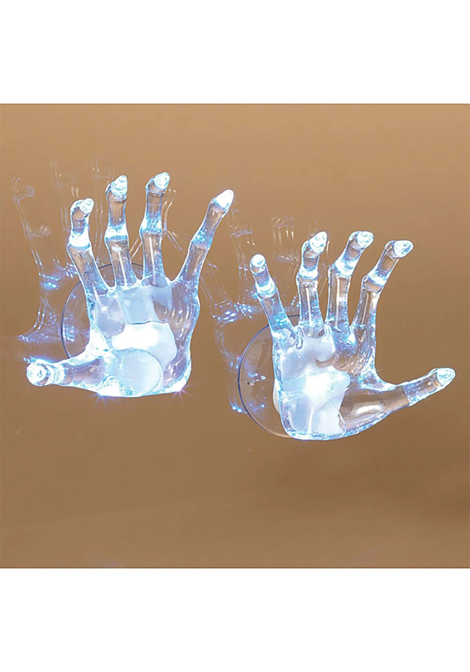 Let this 4″ Lighted Spectral Hand w/Suction Cup give you a hand with decorating for Halloween! Uniquely spooky and fun, the molded decoration is realistically sized and made of clear material. It’s shaped like a hand with slightly curved fingers. Interior lights give it an eerie glow. Use the attached suction cup to adhere it to a flat surface.Â