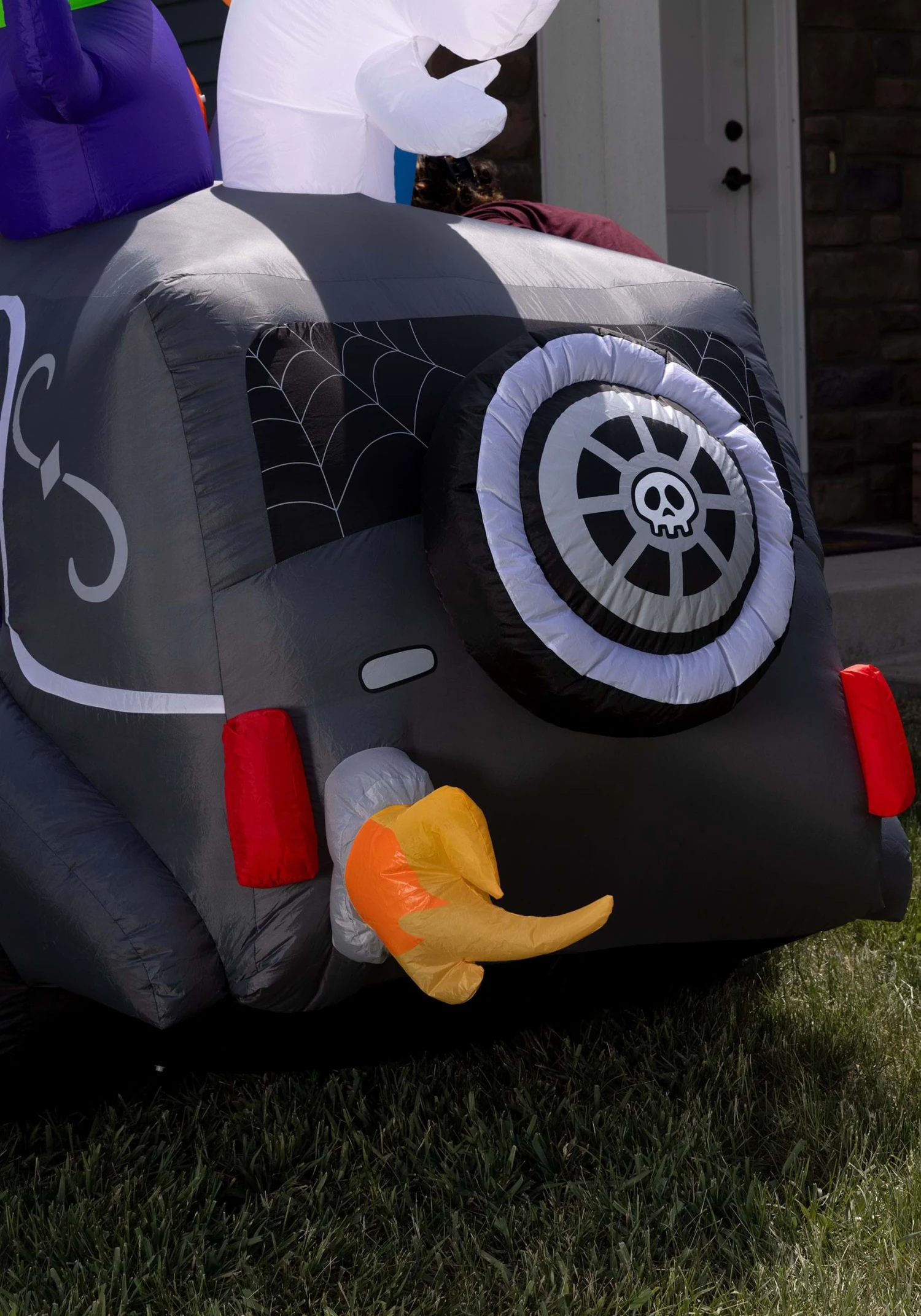 You don’t have to travel far to find spooky decorations when you set up this made-by-us 4FT Spooky Hearse Inflatable Halloween Decoration in your yard! Made of polyester windbreaker material, the decoration inflates 4 feet tall to resemble a black hearse with Frankenstein, a werewolf, a ghost, and a jack-o lantern popping out of the top. The side windows are printed with a skeleton driver and spooky yellow eyes doing who knows what in the back of the hearse.