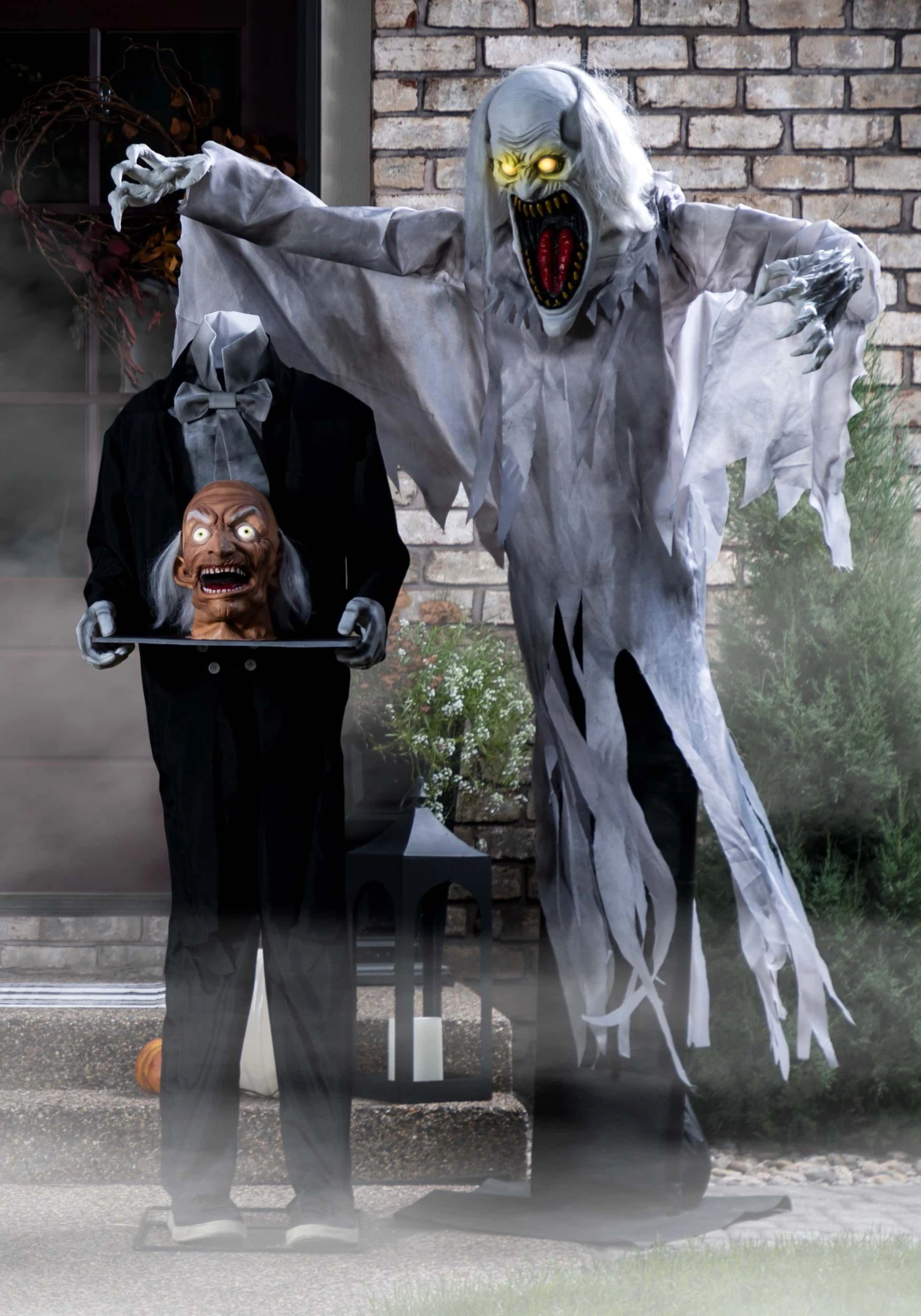 No need to call an exorcist: this exclusive Floating Halloween Ghost Decoration is just here to give your family and guests a good scare! The lifelike figure is shrouded in a tattered gray robe. It comes with a sturdy base. Its outstretched arms can be posed as desired. An enormous mouth with pointy, yellowed fangs dominates its face. When activated, its eyes glow and it makes terrifying sounds as its upper body lunges forward!