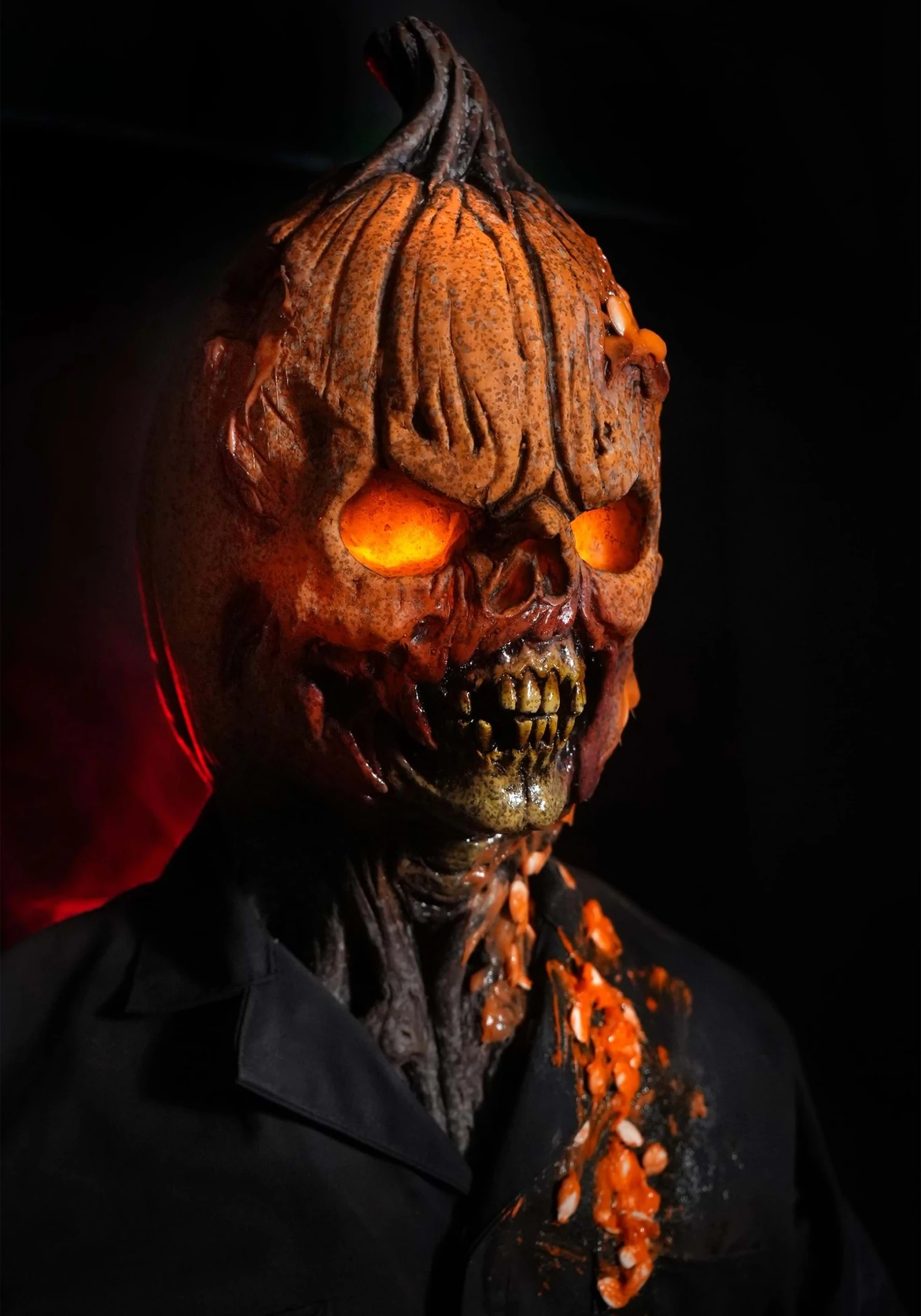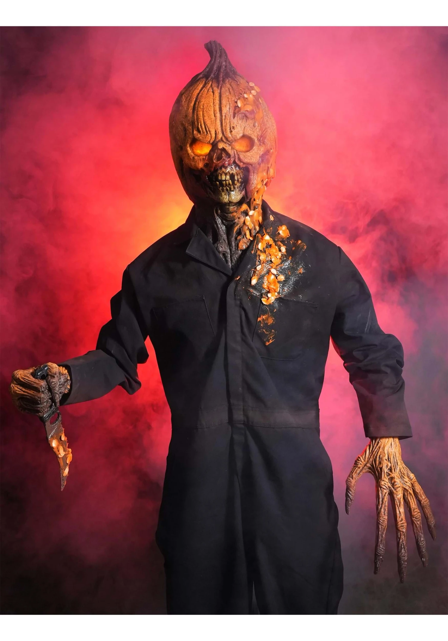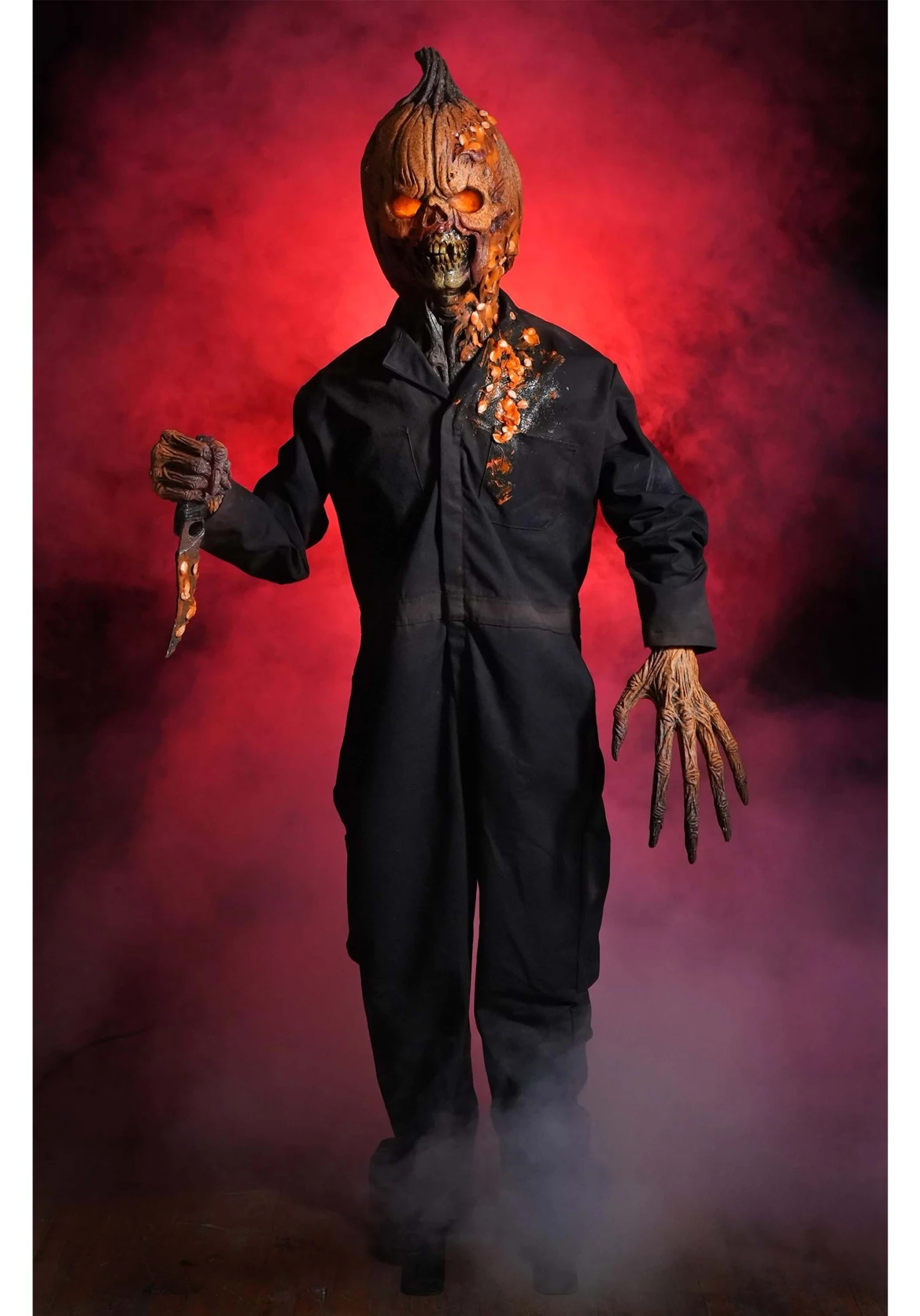 Add some creepy and unique flair to your Halloween celebrations with this 6ft Jack is Back Prop! The lifelike figure wears a jumpsuit and its head is designed to look like a skull wearing a pumpkin. Its eyes light up and it holds a faux weapon.
