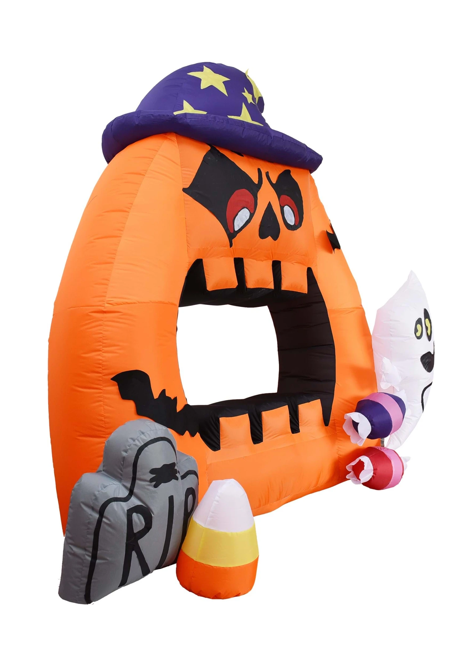 This 7 Foot Tall Large Pumpkin Photobooth Inflatable Decoration is a festive addition to your party decor! Guests can snap a picture of themselves peeking out from the inflatable pumpkin’s open mouth. A gravestone and a ghost add to the ambiance.Â