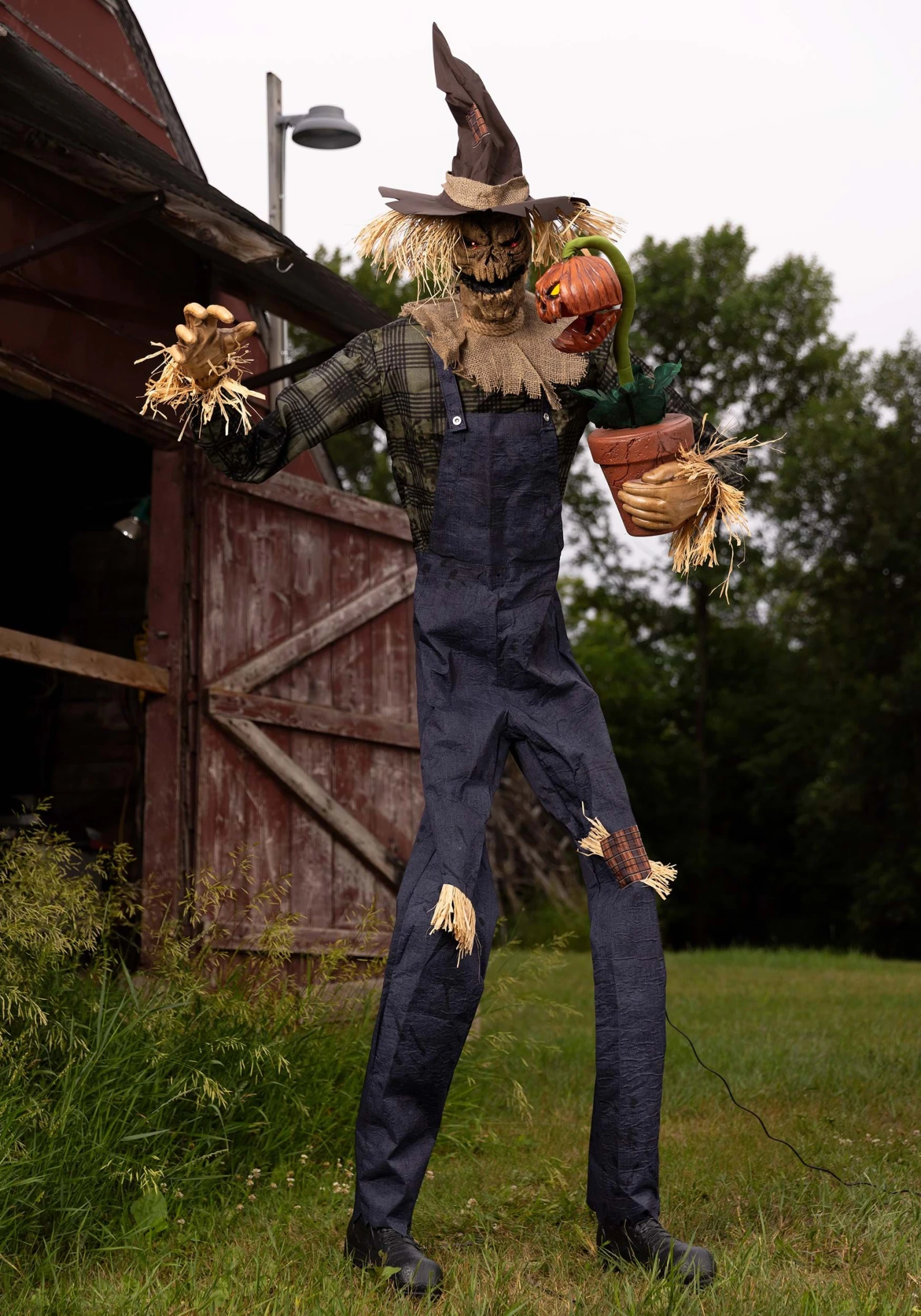 We’re not sure if the scarecrows and vegetables have risen to revenge or not, but we know that you’ll be able to reap the fruits of your decorating efforts when you hear your guests shriek at this Rotten Harvester Scarecrow Prop! The upright figure has glowing eyes and carries a mutant pumpkin in a pot. It is perfect to stand outside in your yard, guard your gates, or even to bring inside and add some spooky moments to your Halloween party.