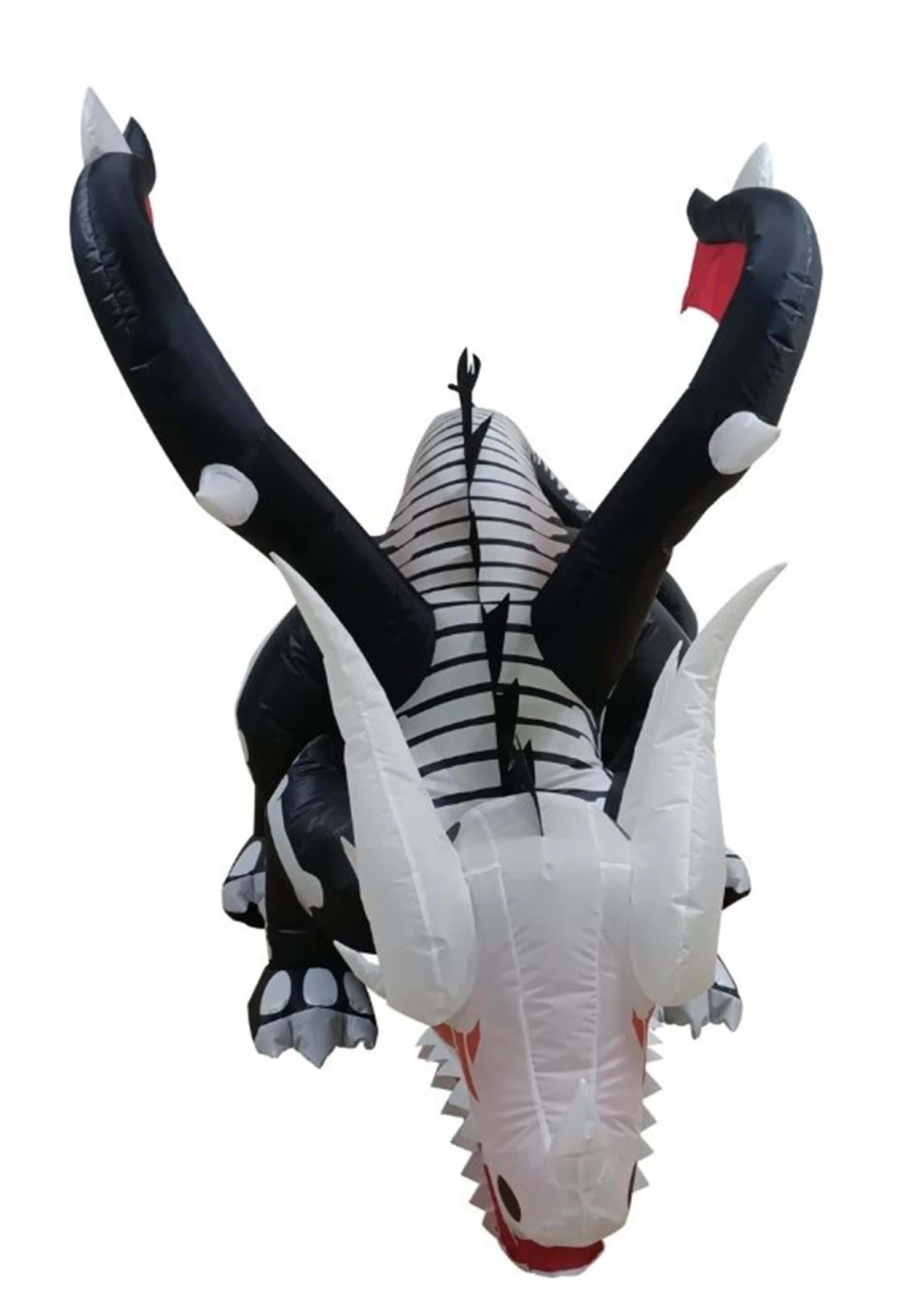 Lucky for this fire-breathing creature, the circumstances must have been just right for it to come back after all this time! At eight feet it makes an instant impact, raising its wings above the heads of even the bravest trick-or-treaters. The tail swings gently around the dragon’s body while the white skull has its jaws cracked open, ready for a Halloween snack. It’s easy to set up this magnificent creature. It comes with a 10-foot cord that will keep it inflated and power the bright LED lights. Keeping the beast grounded is worry-free. It comes with built-in sandbags, tethers, and ground stakes so you can be sure your dragon won’t escape and terrorize the whole neighborhood!