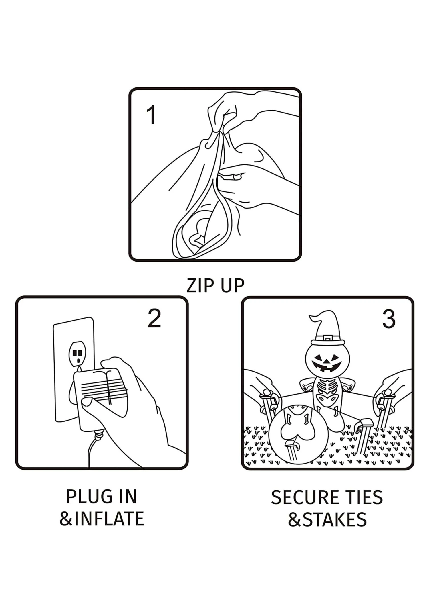 This piece inflates in seconds to produce the desired effect: a unique Halloween entry or lawn decoration. It’s a skeleton of a T-rex that looks like it may be out trick or treating as a witch. It’s carrying a pumpkin bucket and wearing a witch-like hat! There are internal LED lights for added effect.Â