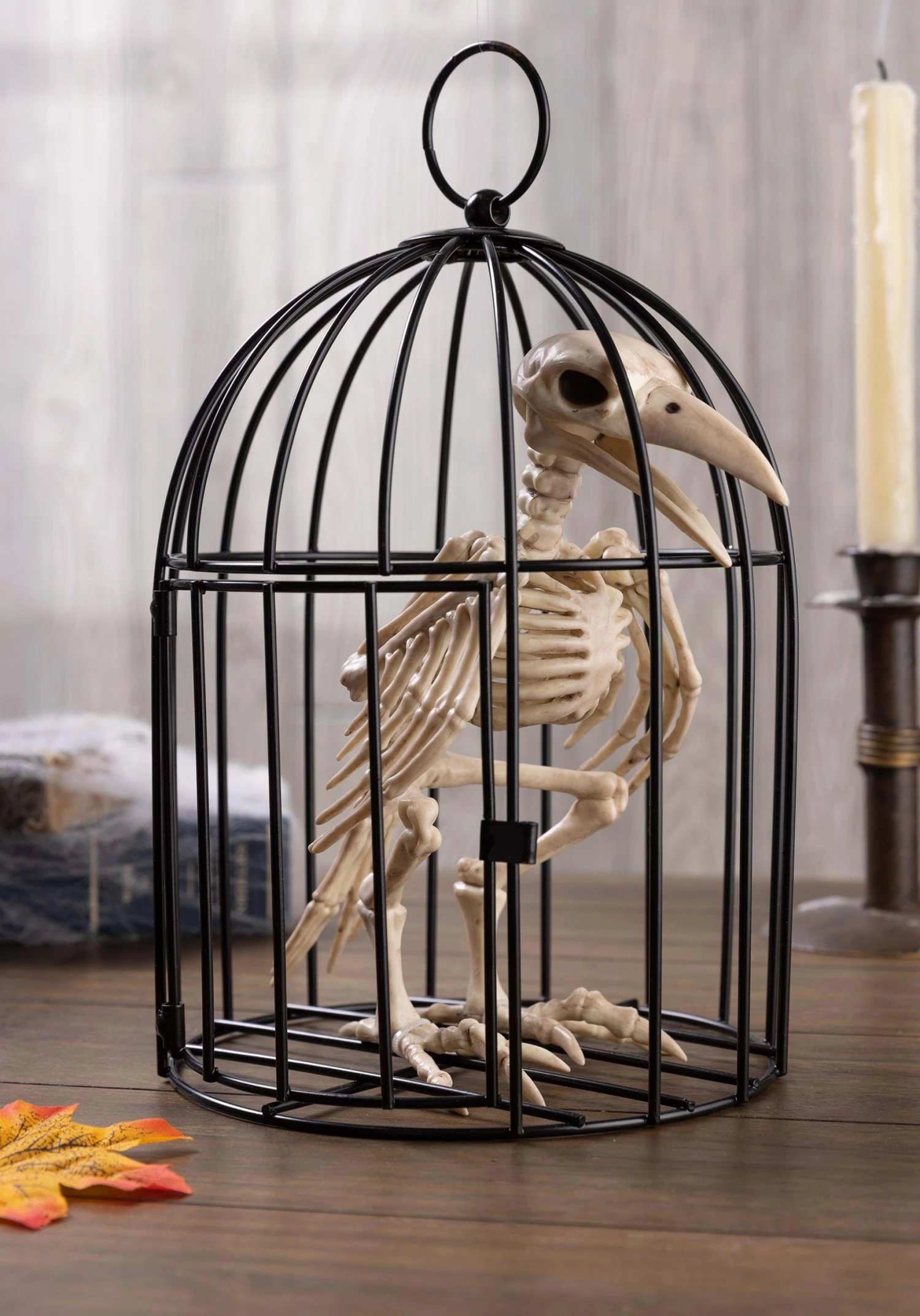 That’d be the gist of this Skeleton Raven in a Cage Prop, that is, if you’re a fan of Edgar Allan Poe’s The Raven. But, you don’t have to be a literary expert to appreciate this fun accessory. All you have to have is a need for more spooky seasonal Halloween decor. And, whether for a haunted house, for trick-or-treater decor, or for a skeleton-themed party, this 9.5 inch skeleton raven is going to be a great choice!