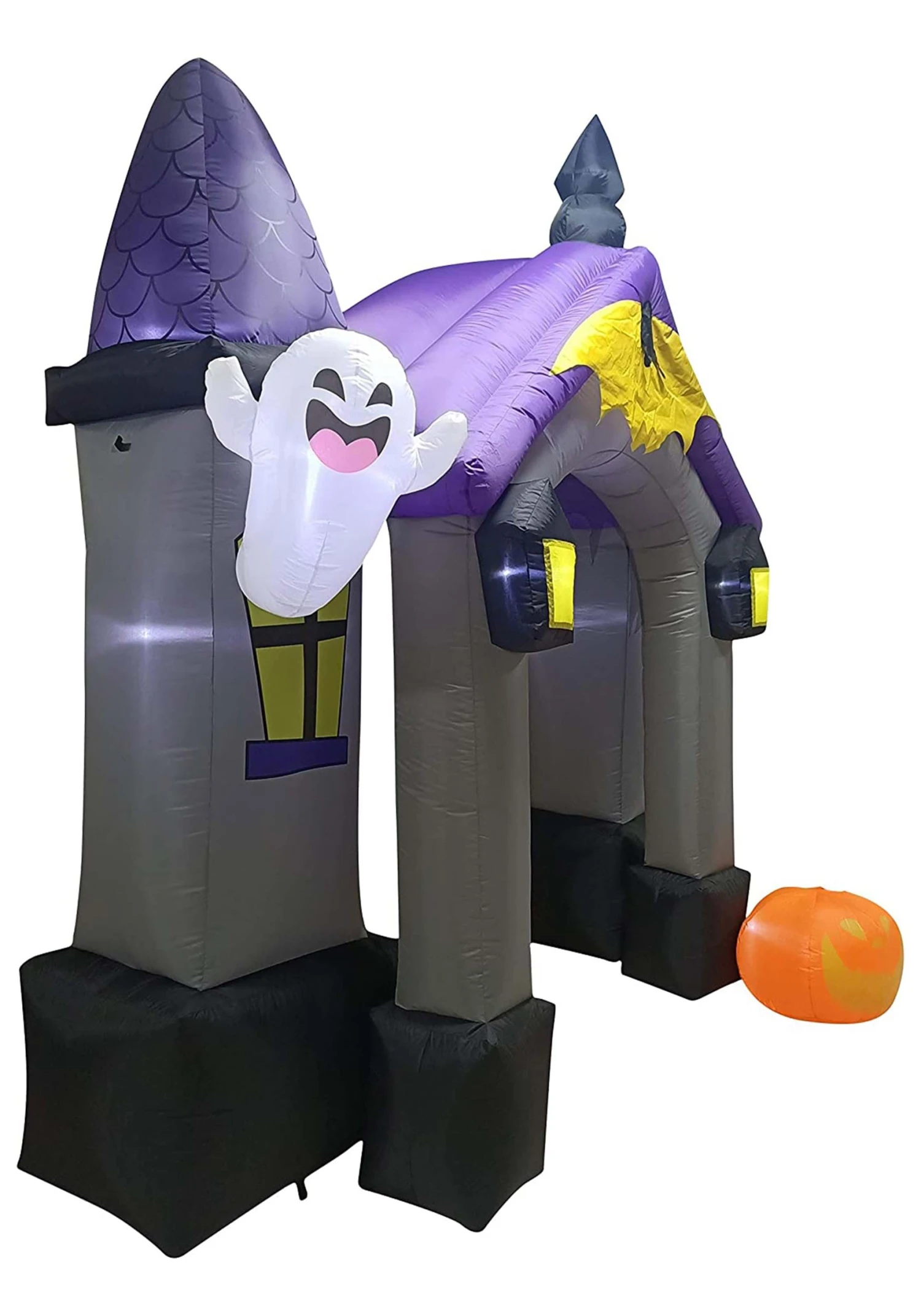 Whether you intend to give tours through a complete haunted amusement park or want to create a Halloween experience the entire neighborhood can enjoy, this 9-foot Inflatable Haunted House Archway has you covered. Decorate your lawn with this charming façade today!