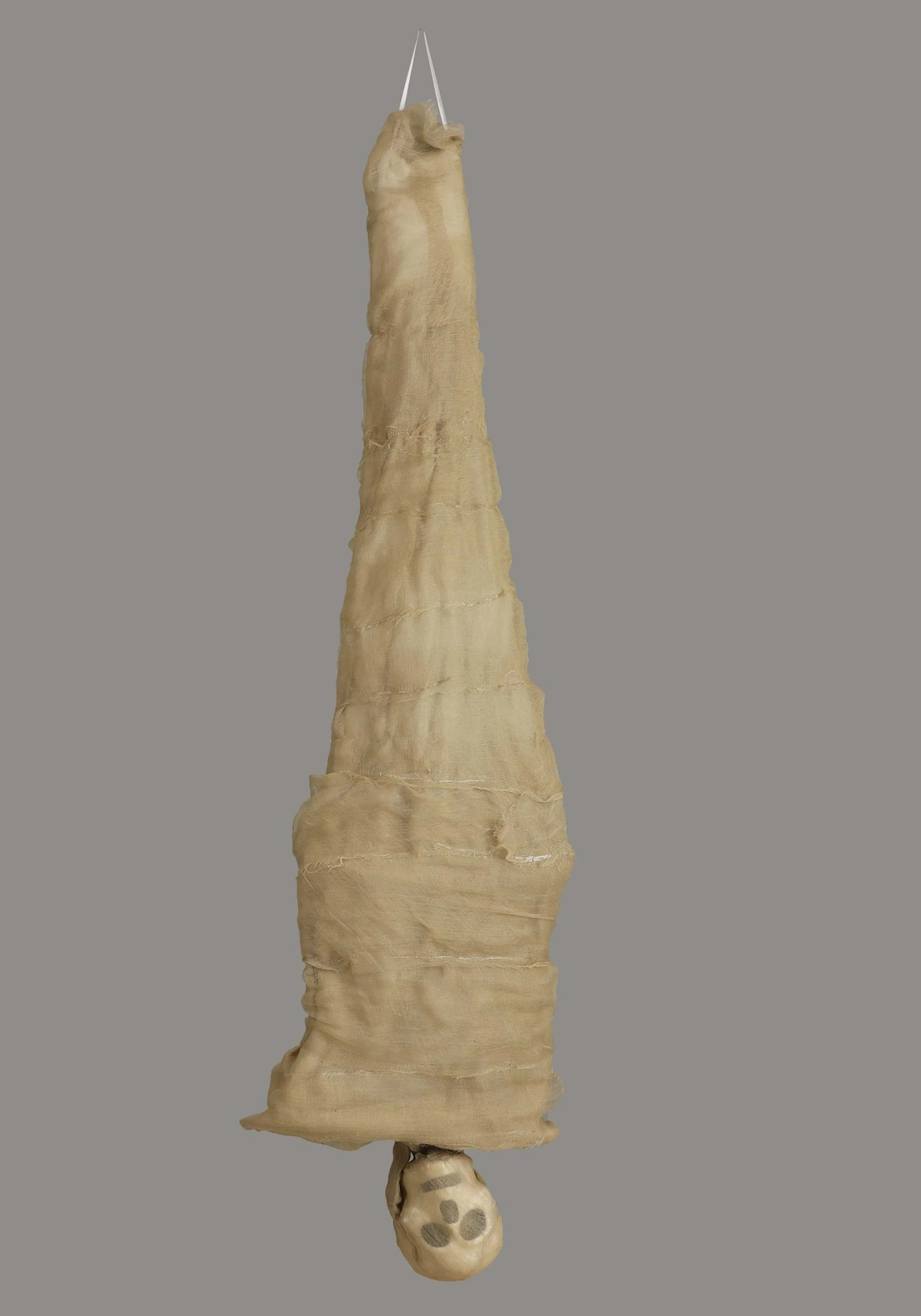 - Molded foam head, gauze wrapping, fiberfill stuffing