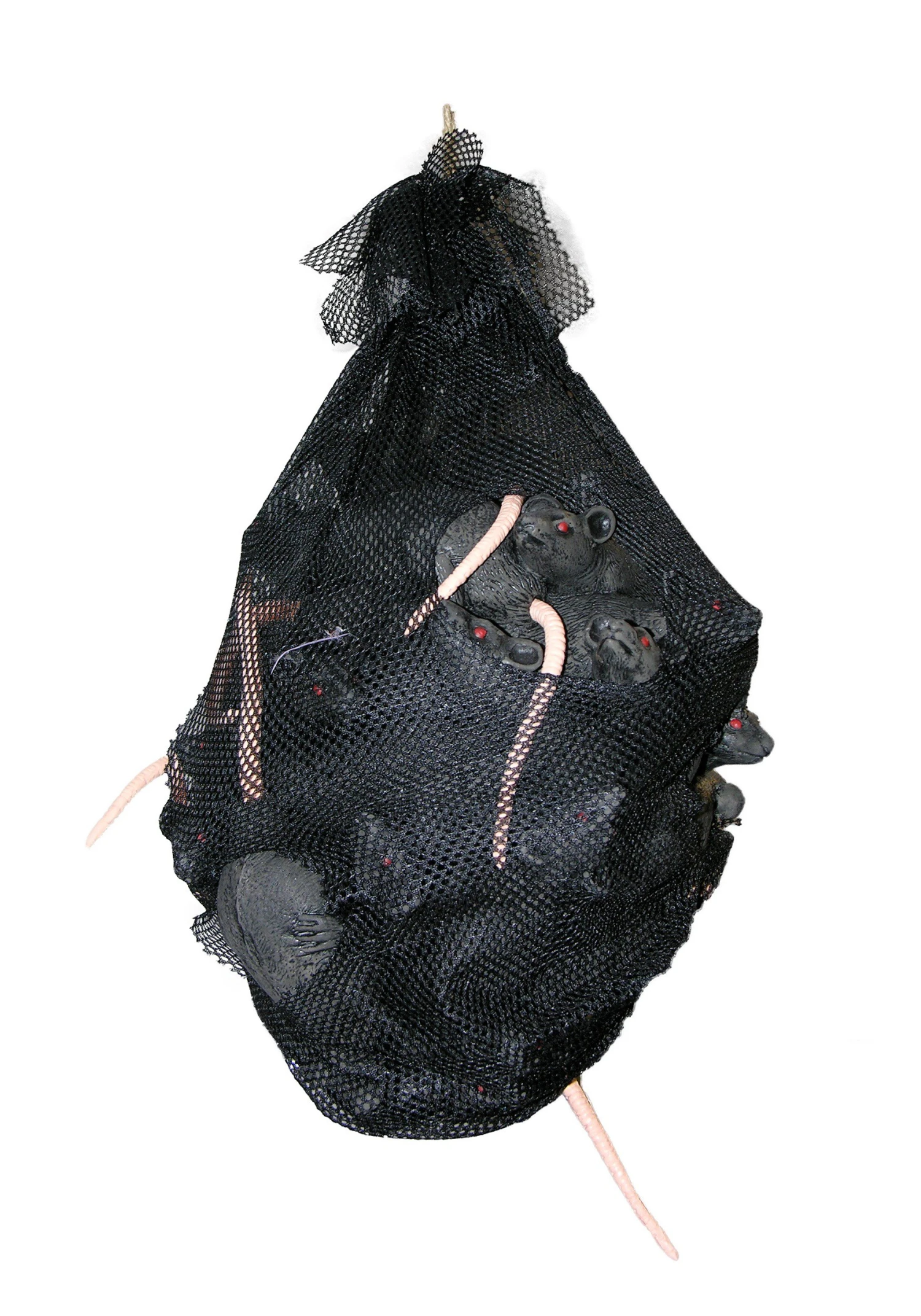 - 9 rubber rat tails protrude through bag