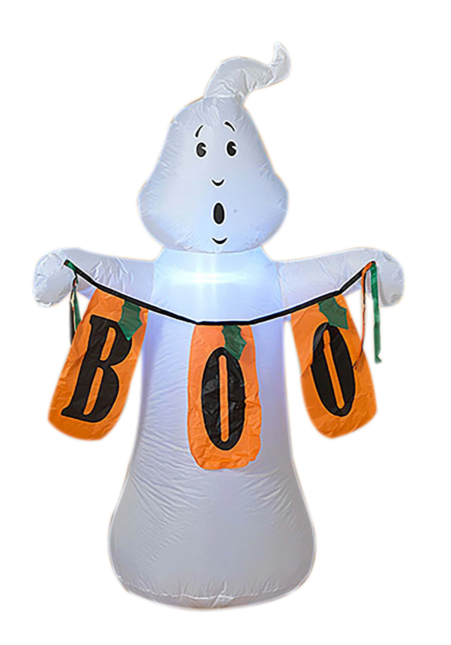 This five-foot-tall inflatable ghost is holding a “Boo” sign written on adorable pumpkins. It’s ready to add a seasonal Halloween splash to your yard. Plug it in and you’ll watch this ghost come to life in a matter of seconds. The ghost comes with tethers and two stakes to keep this ghost down in that windy October weather. Lighting up the night, your neighbors are sure to welcome this ghoul to the neighborhood day and night!