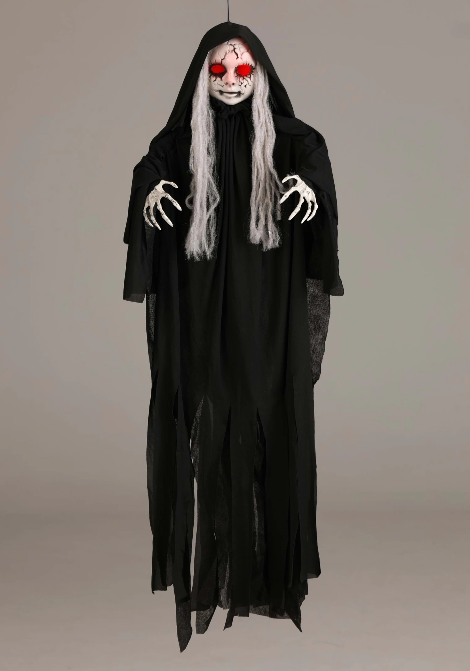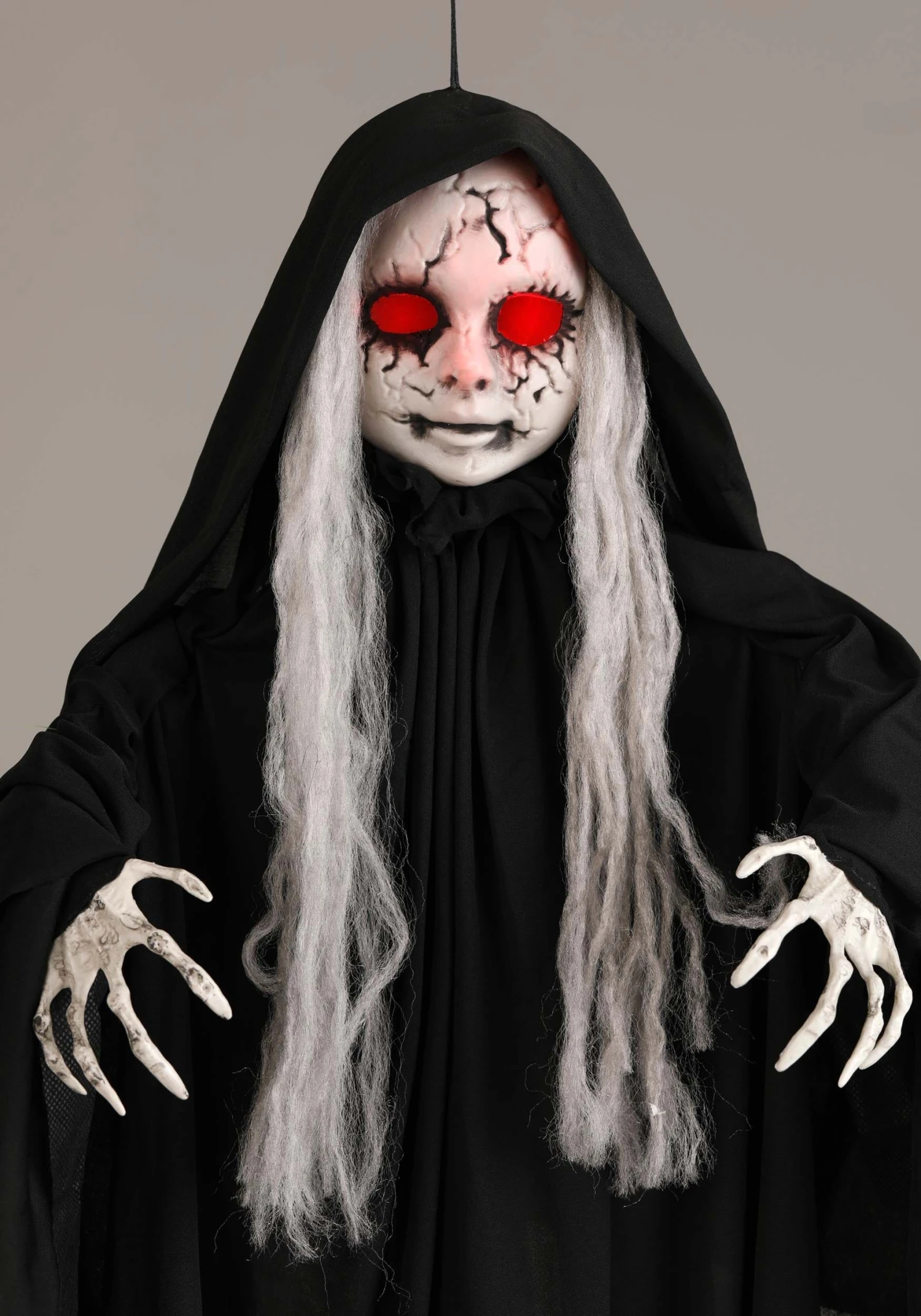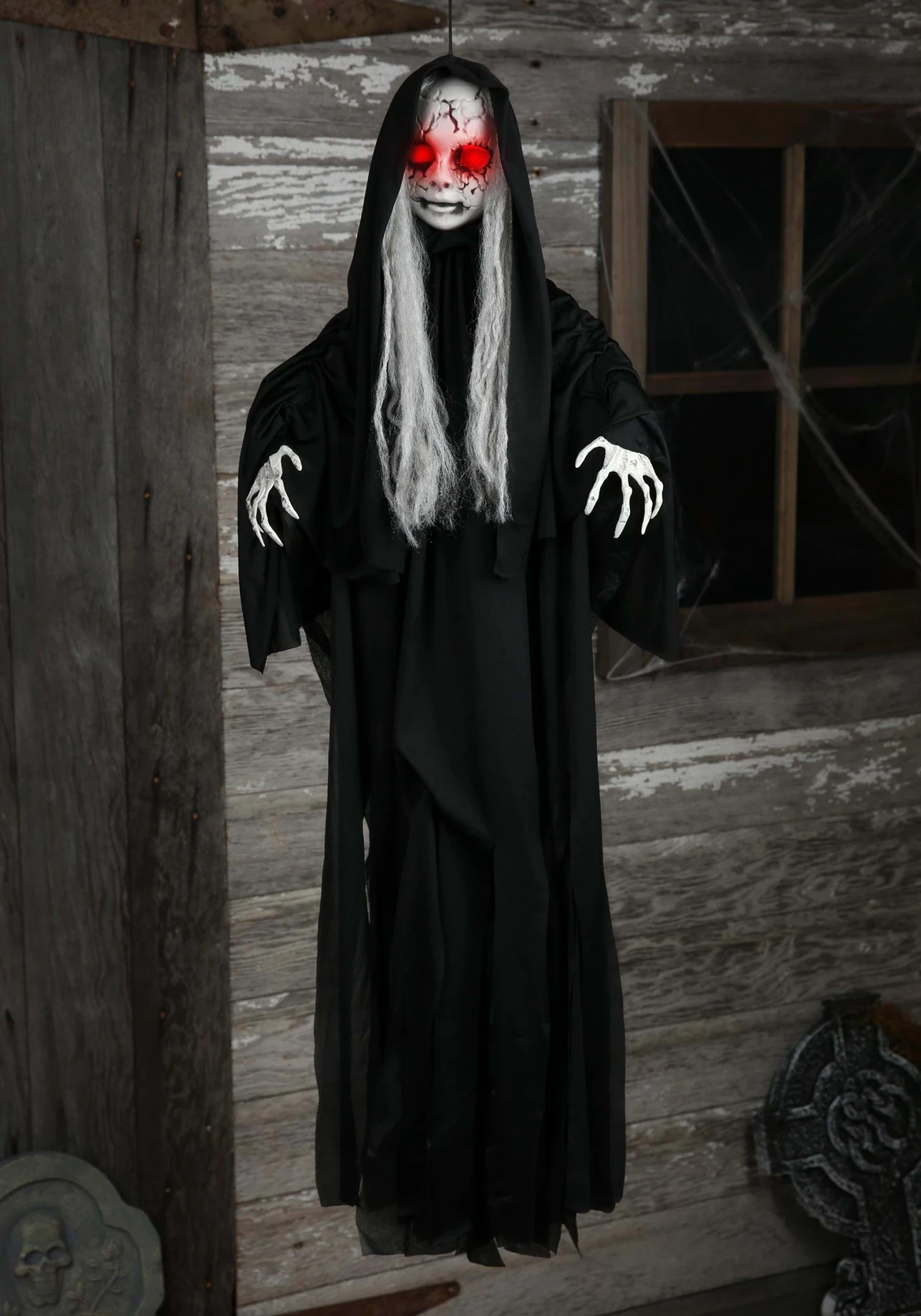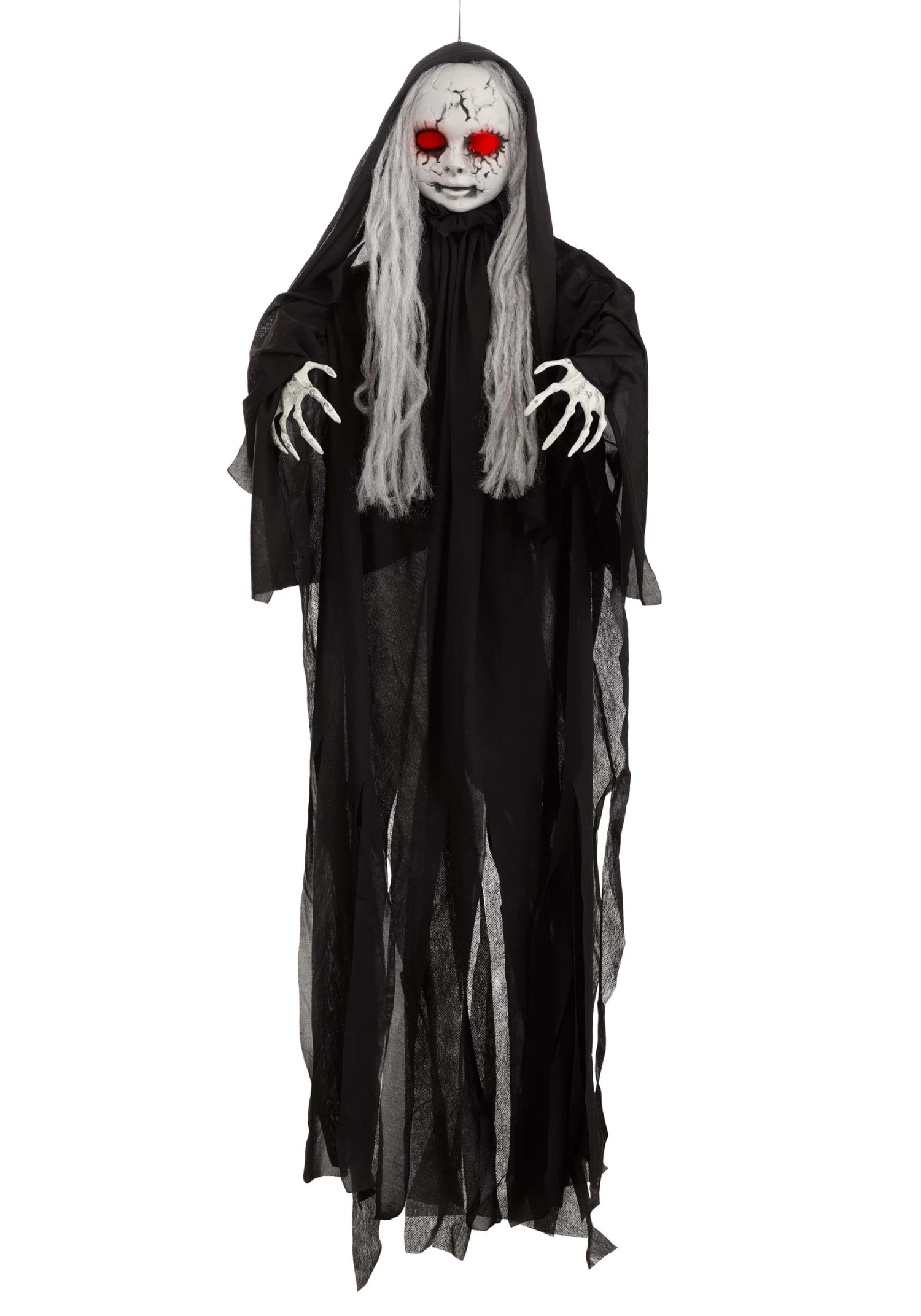 Our in-house team worked tirelessly to craft a home decoration that would, quite simply, make you want to run for the hills. This piece is exclusive to us and features a black-cloaked hanging figure with a childlike skull face and skeletal hands. The hair is white and stringy and the eyes really glow red. Don’t forget that cracked skull! It tells a haunting story all its own.