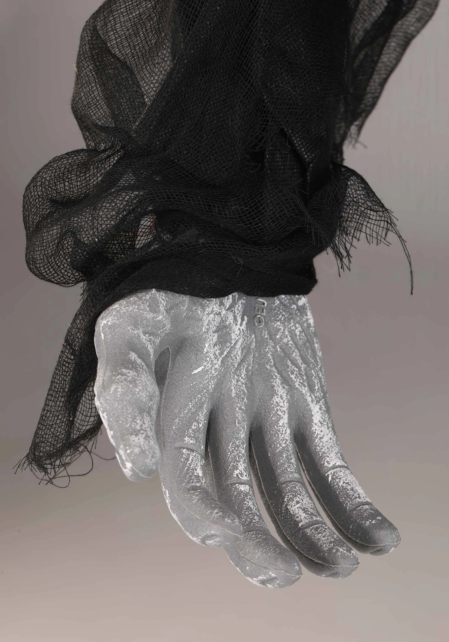 - Molded foam skull, shoulders, and hands; fabric & faux fur drapes