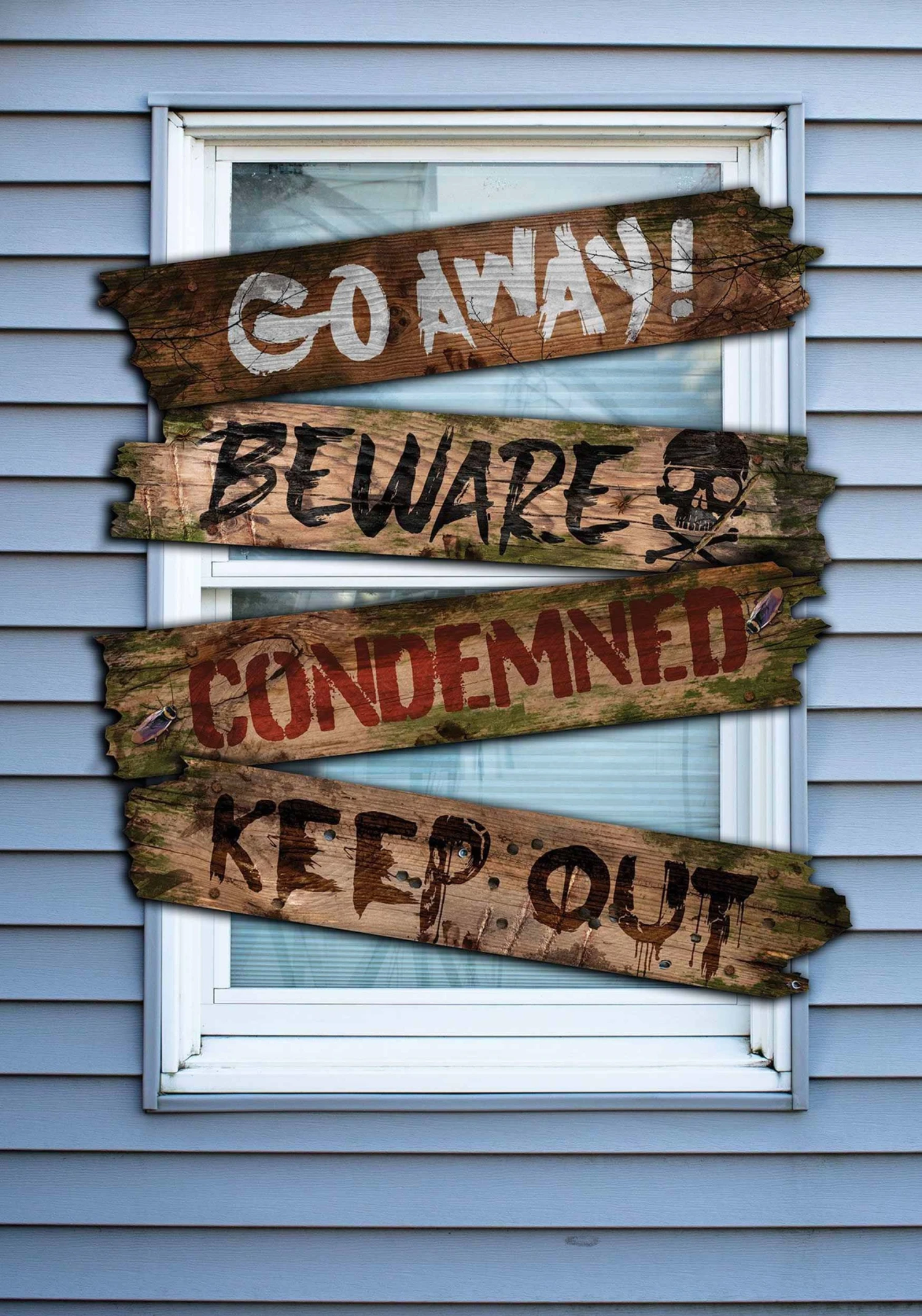 These eerie boards are meant to send shivers down your spine. And you don’t need to break out your hammer and nails. Simply stick this one-piece board prop to the sill and your home will be that much more spooky. The perfect prop to make your home look haunted at first glance, this exterior decoration has eerie sayings such as, “Keep out” and “Go away” printed on the front. Now, all you have to do is add some ghostly noises to complete your home’s old house mystic!