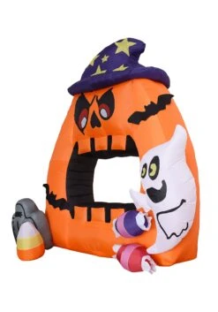 64-Inch Electric Lighted Inflatable Witch & Pumpkins Decoration