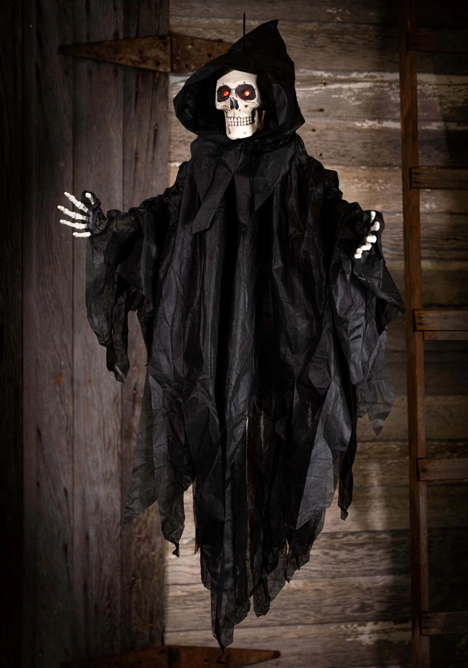 - Hanging Reaper has pulsing red lights for eyes and skeleton facial details