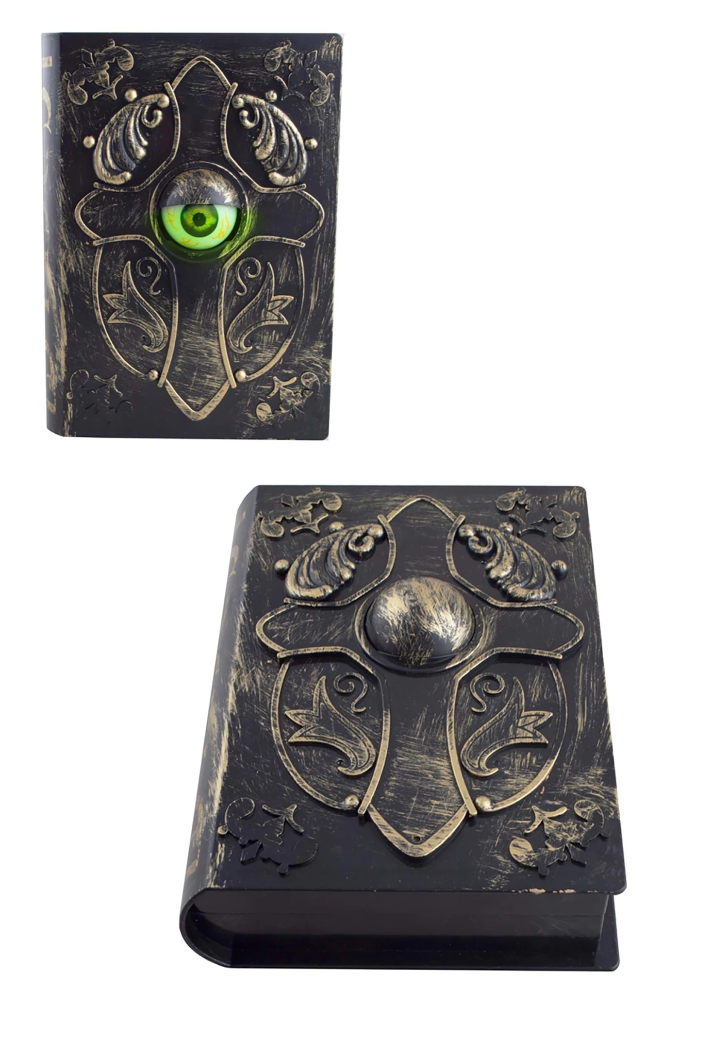 Add a menacing aura to your home with this creepy decoration. The book is made out of molded plastic and is nearly 2 inches thick! The middle of the cover has a spherical-shaped eyeball, which opens up and moves when you place batteries inside. The book also makes some eerie noises, making it extremely easy to judge this book by its cover!