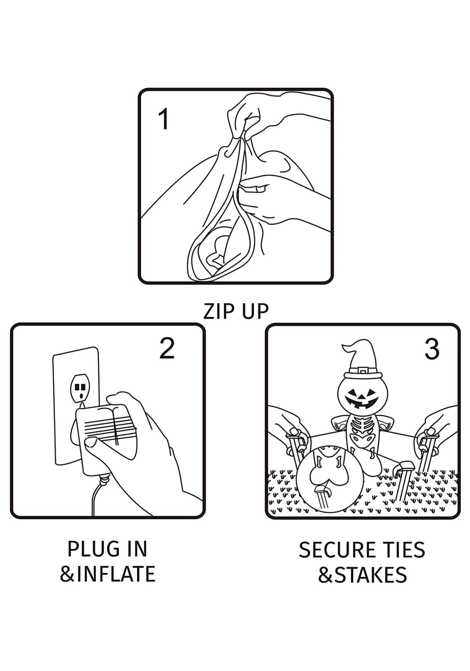 This cheerful inflatable will add a little color to your Halloween decor for years to come! Simply zip up the back, plug it into an outlet, and it will inflate to five feet tall. To make sure it stays put in the windy autumn weather, you’ll want to tether it down with the included stakes and cords. Glowing from the interior with LED lights, this little ghostie will delight passers-by both day and night!Â