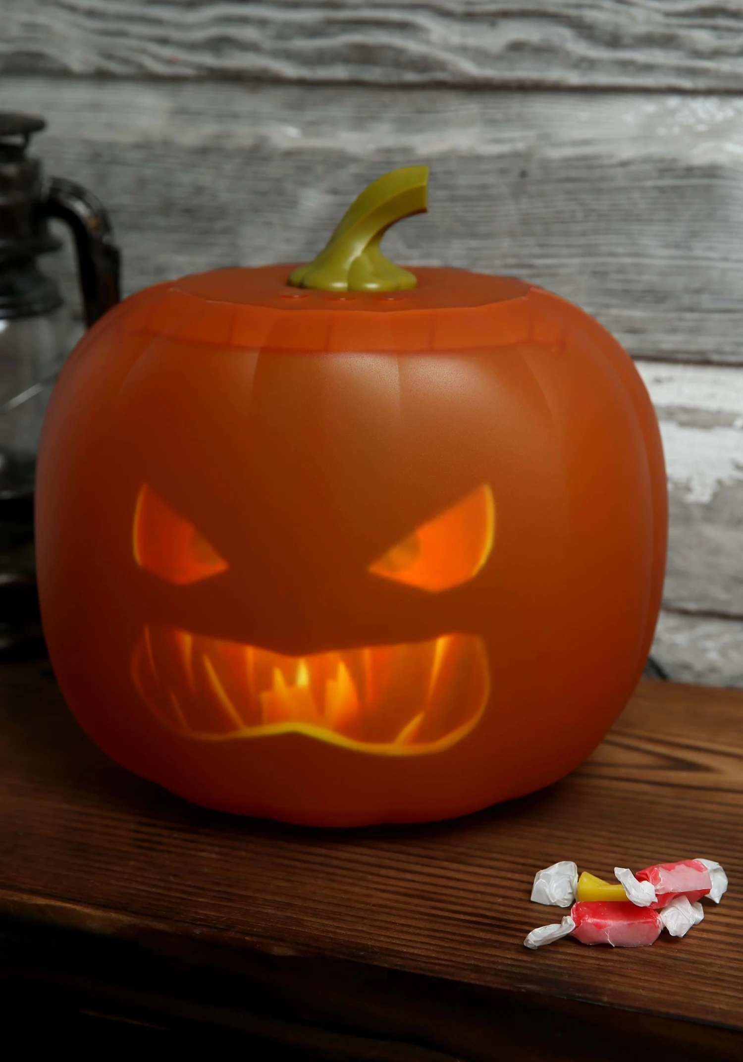 It’s not every day you meet a pumpkin with a personality! But as soon as you brought Jabberin’ Jack home from the patch, your front porch got a lot more lively! You would think that a haunted jack-o-lantern would always be scary but that’s just not the case. He’s the kind of guy you want to sit on the porch swing with while you swap stories and sip on hot cider. Whether you’re hosting a Halloween party or simply want a way to greet trick-or-treaters, this chummy jack-o-lantern prop is sure to be a happy guest in your home for many Halloweens to come!