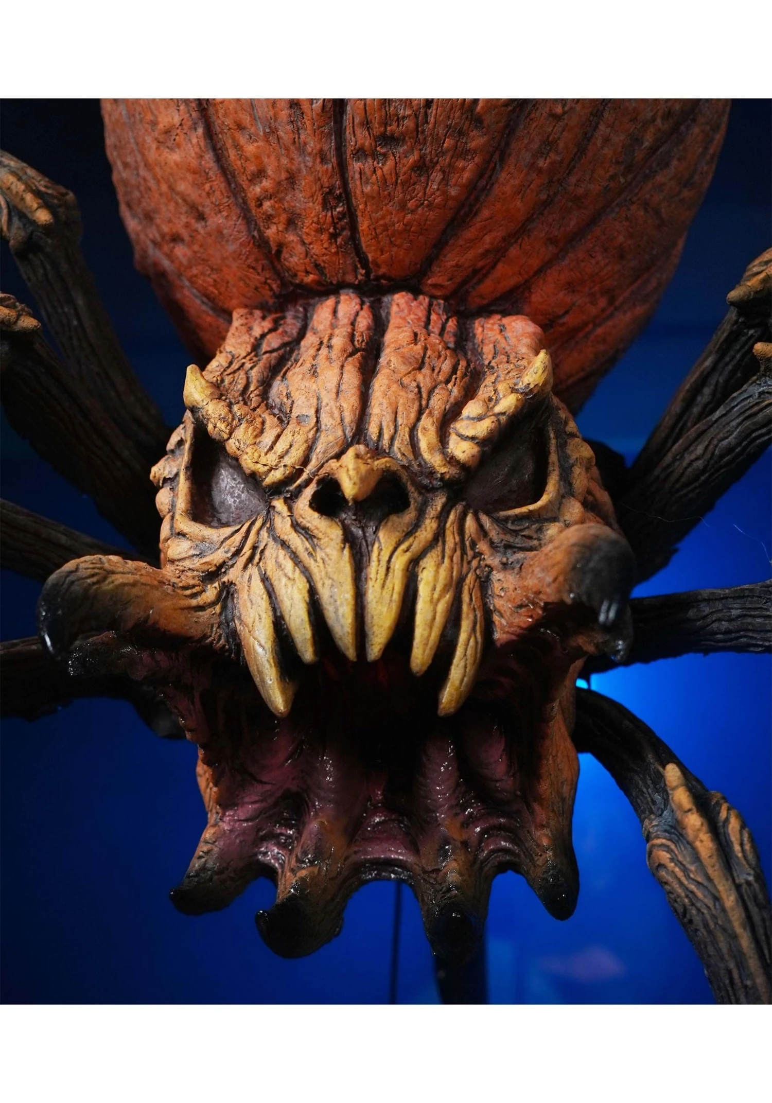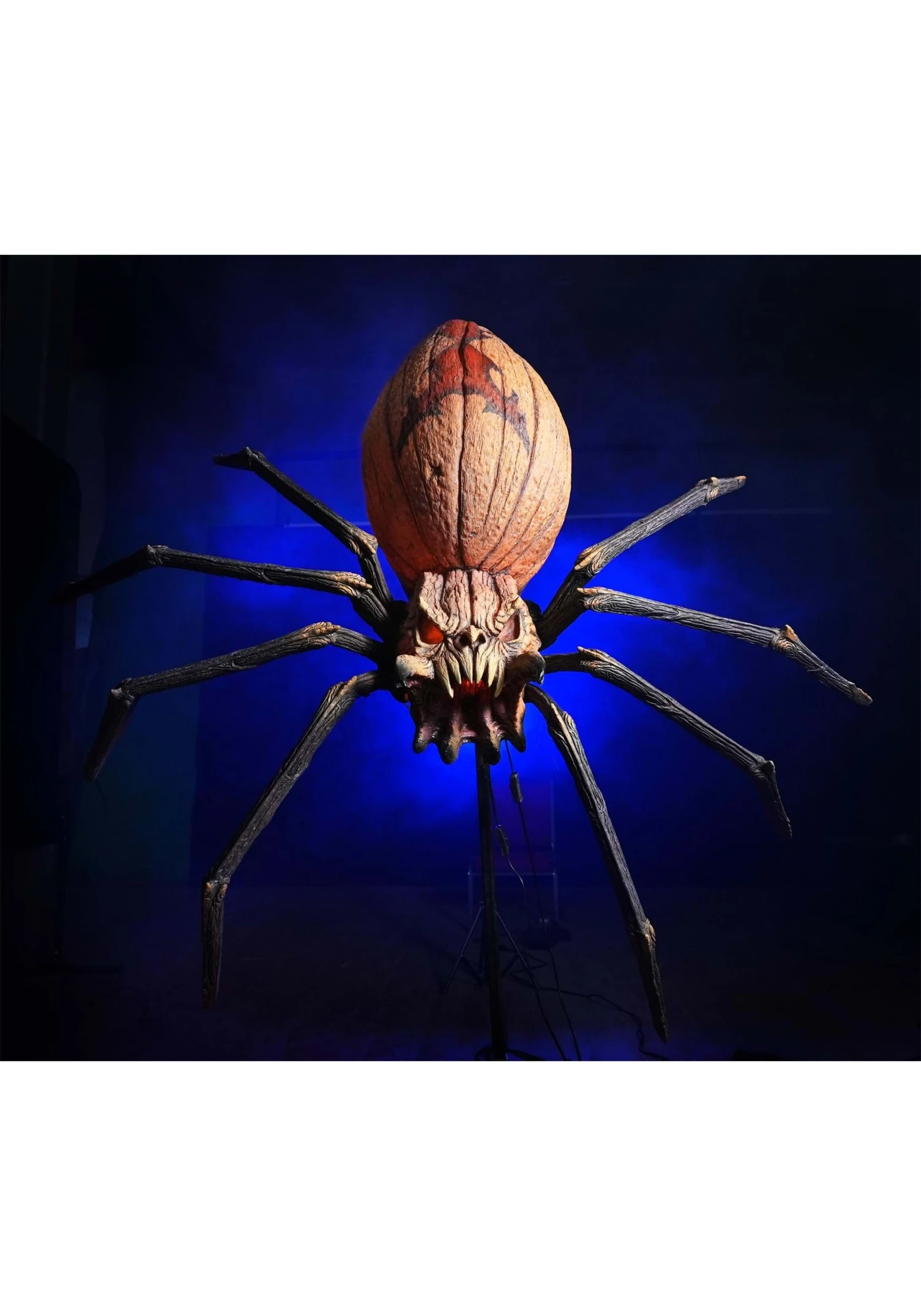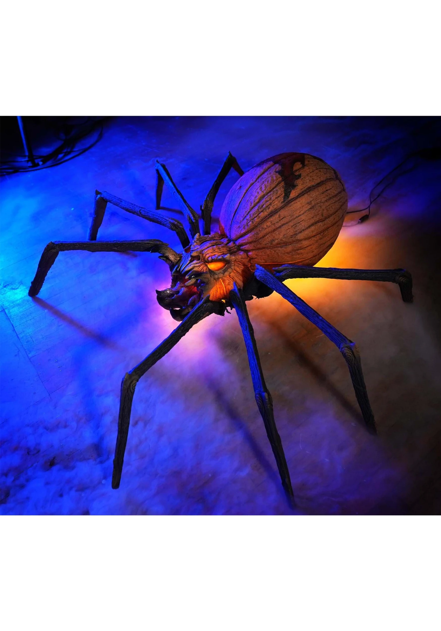 If your spidey senses are going haywire, it might be because of this horrifying Jack Widow Prop! Whether from fear or plain excitement, we have an oversized arachnid that is ready turn your decorating to the next level. The oversized fake spider has a pumpkin-colored abdomen, eight extra-long legs, and a mouth open in a fanged snarl with a wet-finish interior. Activated the LED lights to create a hellish glow that shines through its devilish triangular eyes. Pose it on a fake web or set it on a perch where it can frighten even the bravest of your friends… because a 5-foot wide spider will test the mettle of anyone.