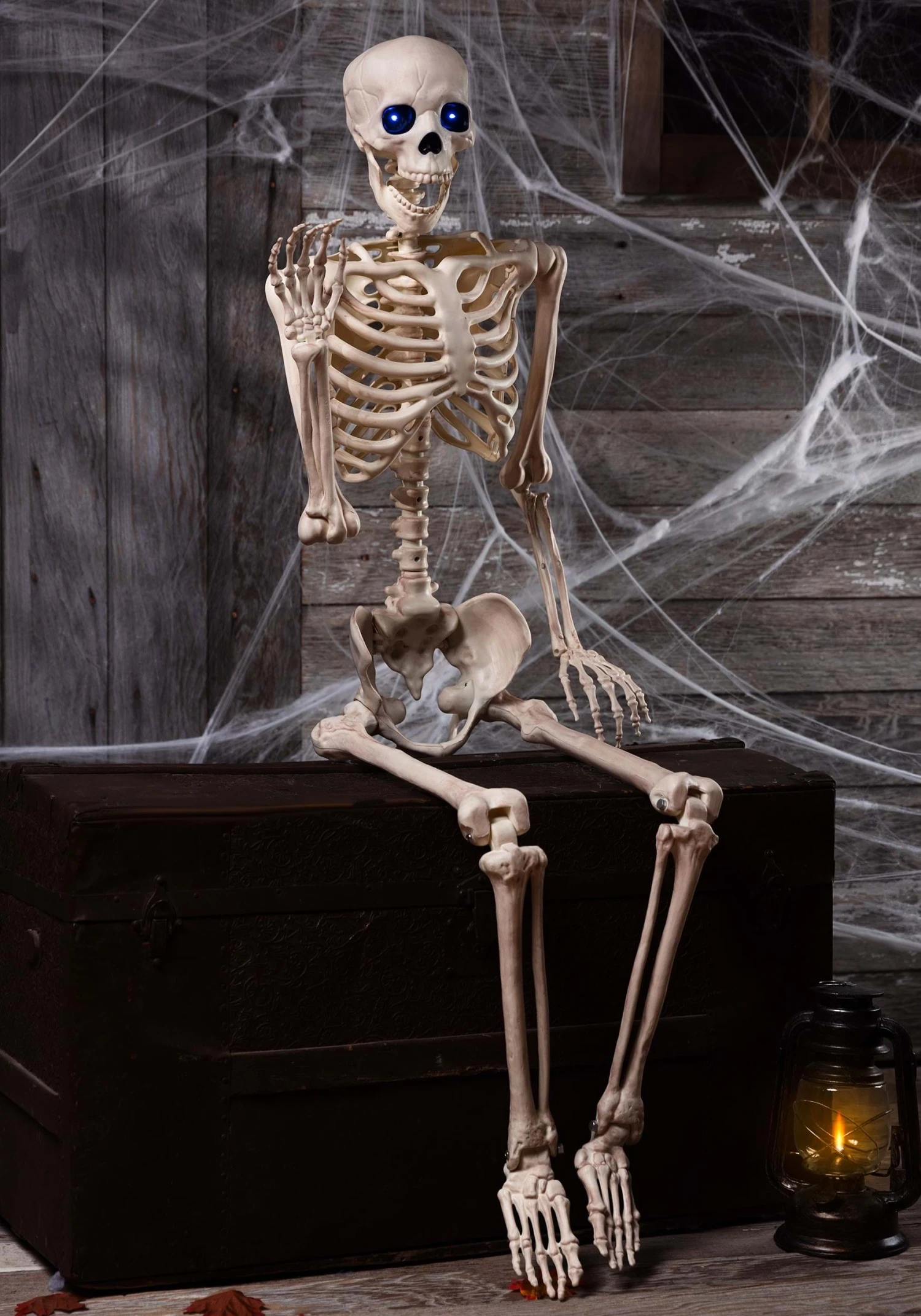 Stare into the spooky soul of a skeleton when you bring this Light Up Skeleton decoration home. This Halloween decoration stands at 5 feet tall and is made of articulating molded plastic bones! Position the upper portion of the skeleton how you like… but make sure you are wary of the gleaming blue glow within its eyes. We’re sure the soul of the season will be ready to spook all of your guests. And, for once, you don’t need to be on the lookout for ghosts… (probably).Â
