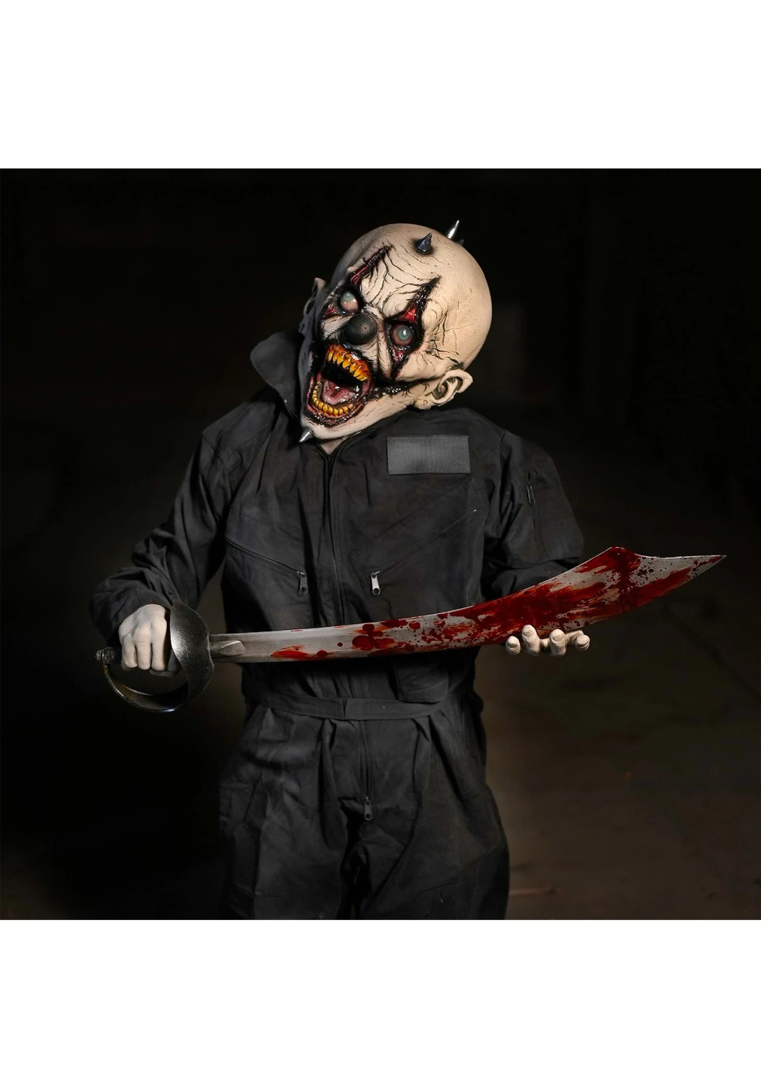Your friends and family will shriek at the sight of this petrifying Little Creep Clown Prop! The small figure wears a dark jumpsuit and holds a long, curved blade that’s stained with faux blood. Its snarling face is painted with clown makeup.