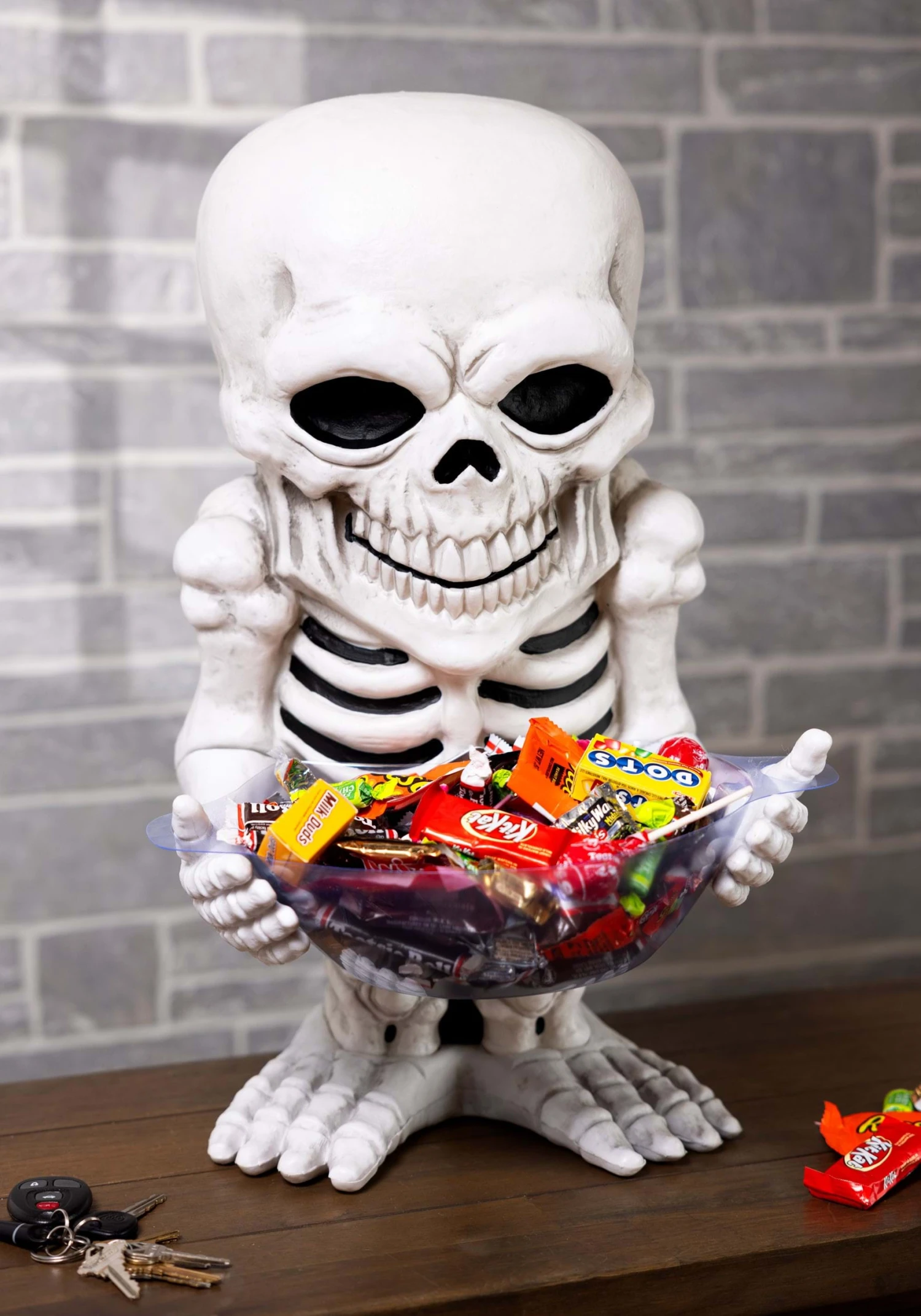 Transform your treat station into a treasure trove of tasty temptations with this skeleton as your candy custodian. Fill the bowl with any prepackaged treats and watch as this bony buddy dutifully dishes out the delights to daring trick-or-treaters.