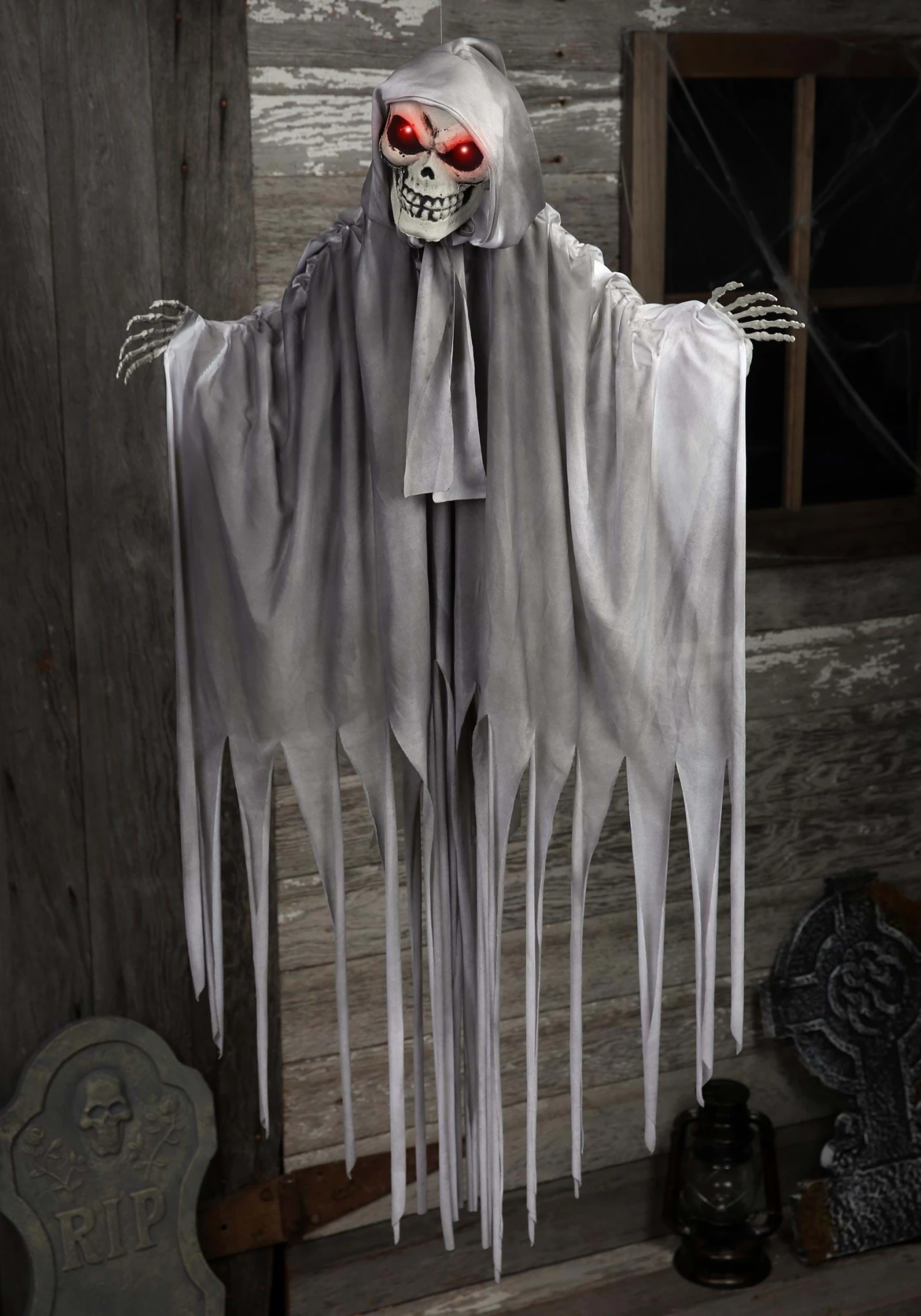 Send your spirited friend out to make a few new acquaintances! With this Made By Us Talking Hanging Ghoul Halloween Decoration swinging from your porch or tree, it’s sure to garner the attention it deserves. With glowing red eyes, there’s an initial shock to catching sight of the exclusive decoration. But swaying in the October wind, this animated fellow almost looks timid. Provide the specter with a few batteries, and they’ll have all the energy they need to chat up the neighbors and leave you to your own Halloween delights!