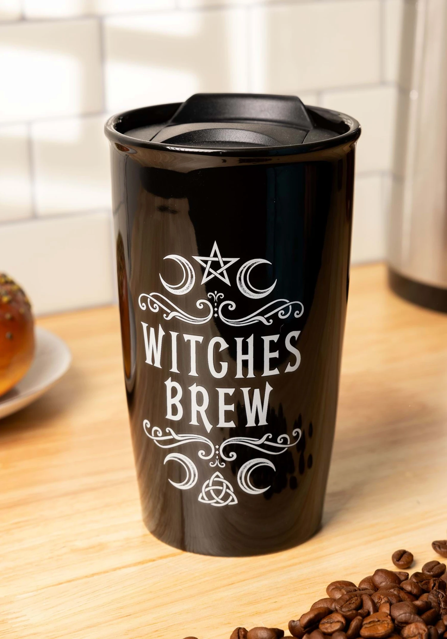 Witches don’t get their coffees and teas at any old supermarket. They make their own potent brews in big, black cauldrons. They turn up their warty noses at normal flavors like Hazelnut or Chamomile, preferring delicious novelties like Eye of Newt and Toe of Frog. Sometimes they offer samples, but if you’re not a witch yourself, drinking their house blend might turn you into a bat. This Witches Brew Double Walled Travel Mug will keep your magical draught insulated at your preferred temperature. Best of all, it will discourage anyone else from trying to sneak a sip.Â